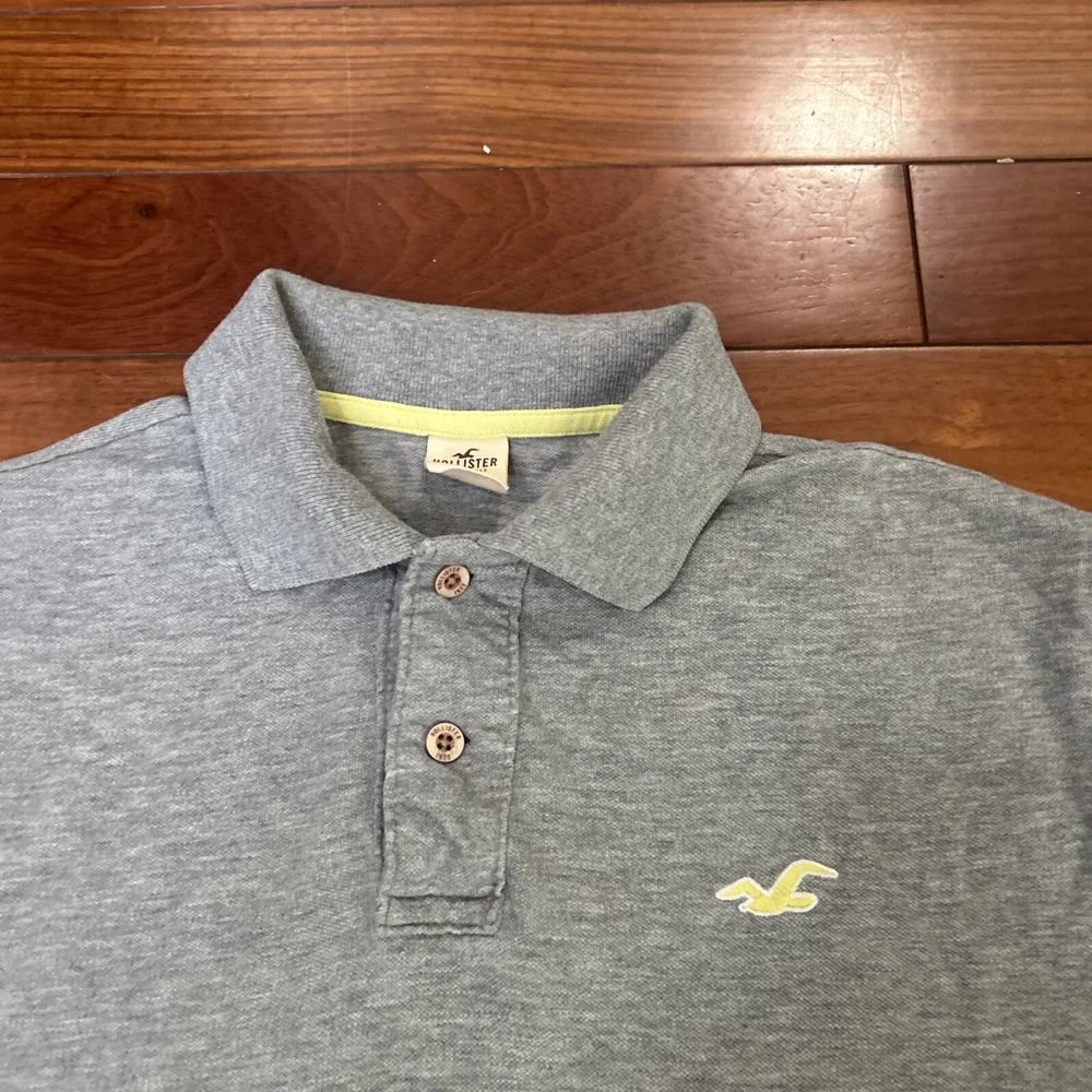 Hollister Polo Shirt Adult Large Gray Yellow/Green Logo Men's Wear