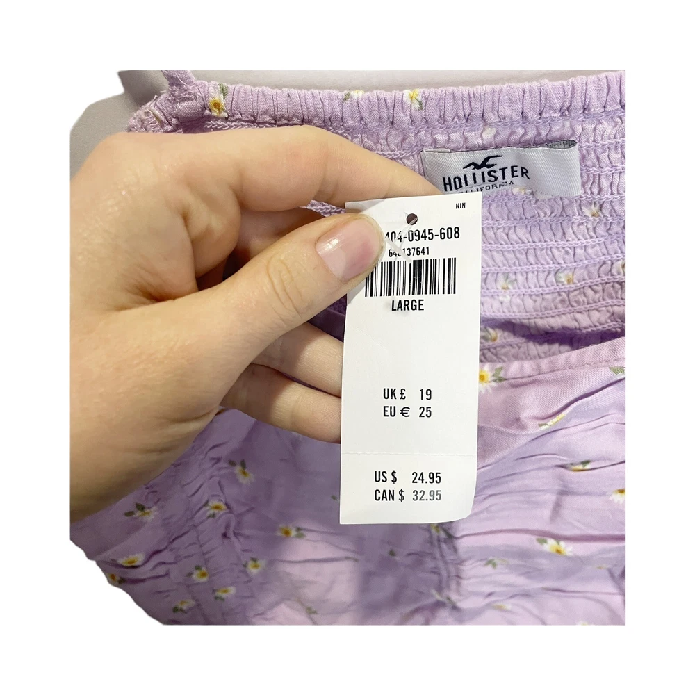 Elevate your summer wardrobe with this stunning Hollister purple floral crop top in size L. The square neckline and strappy sleeves add a touch of feminine charm, while the tie front accent enhances the overall appeal. The regular fit and stretchy material make it comfortable to wear, perfect for any summer occasion. Pair it with your favorite high-waisted shorts or skirt for a chic and stylish look. This blouse is a must-have for any fashion-forward woman's collection. length 15" chest width 15" All Measurements Are Approximate Please email us with any questions! ** LIKE THE ITEM BUT NOT THE PRICE, REASONABLE OFFERS ACCEPTED We stand by our clothing items and strive to make every purchase perfect, please reach out if you have an issue with an order before leaving negative feedback Every Purchase Gets Us closer to our dream of a brick and mortar store!!!