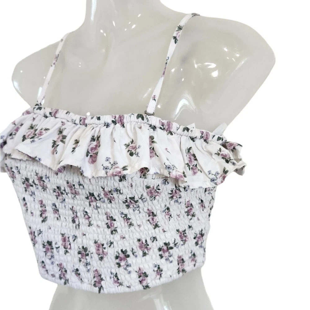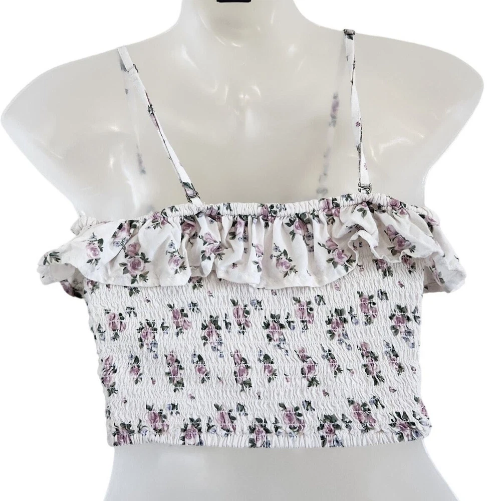 Hollister Ruffle Smocked Cropped Top Bandeau Convertible Floral White Size Small
