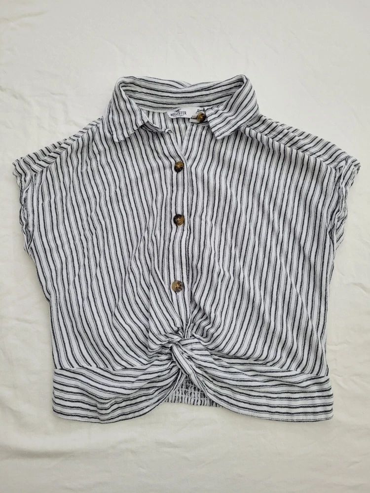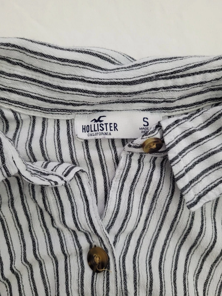 Hollister Size Small Blue And Gray Striped Cropped Halter Top. Condition is Pre-owned. Shipped with USPS Ground Advantage.