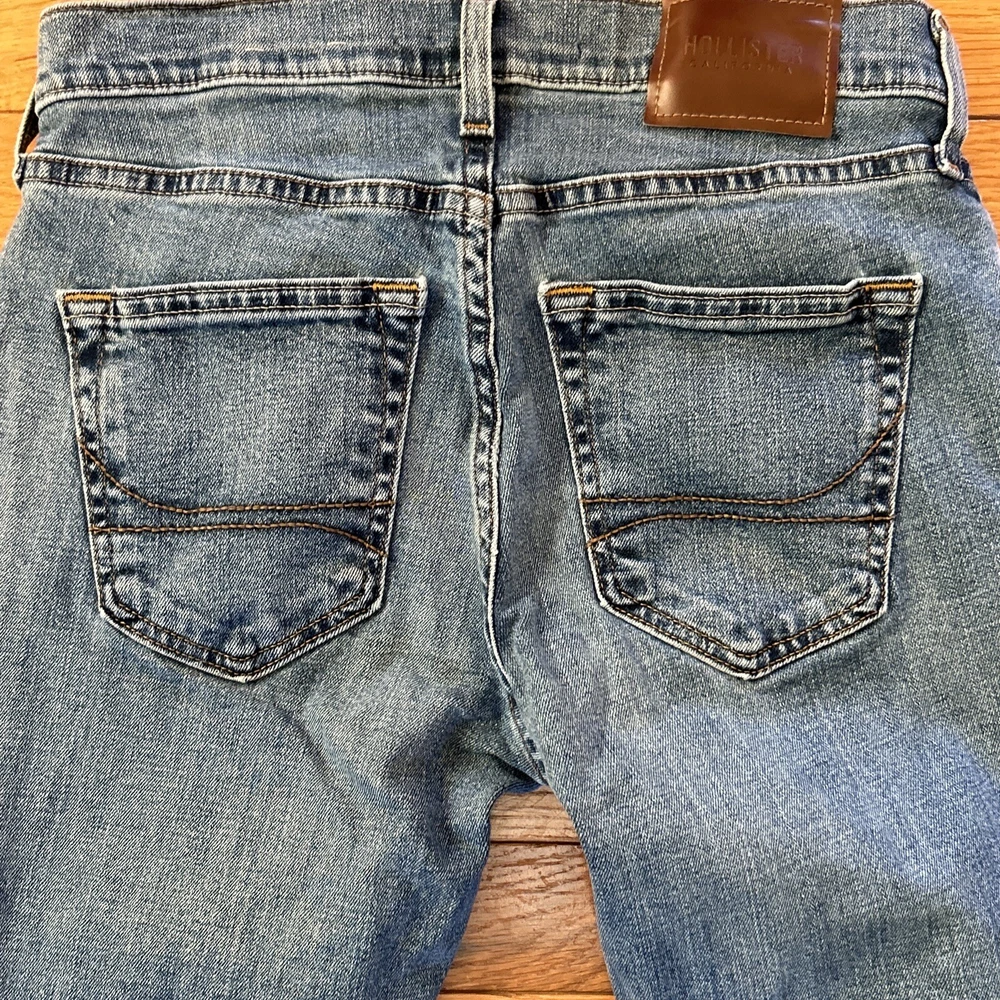 Hollister Slim Straight Epic Flex Denim Medium Blue Jeans Waist 26 Length 30 Actual measurements: Waist laying flat 15” Rise 9.5” Inseam 30” Excellent condition from a smoke free home. Inventory dg
