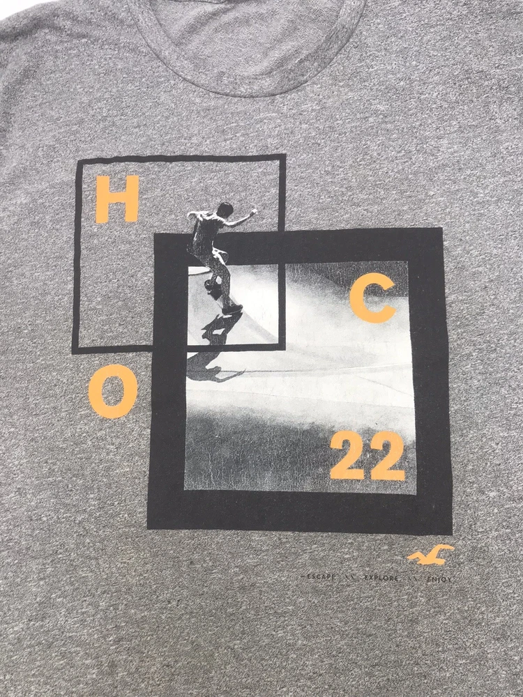 Hollister T-Shirt Men XLarge Gray Surf Graphic Print Flaws..#17006