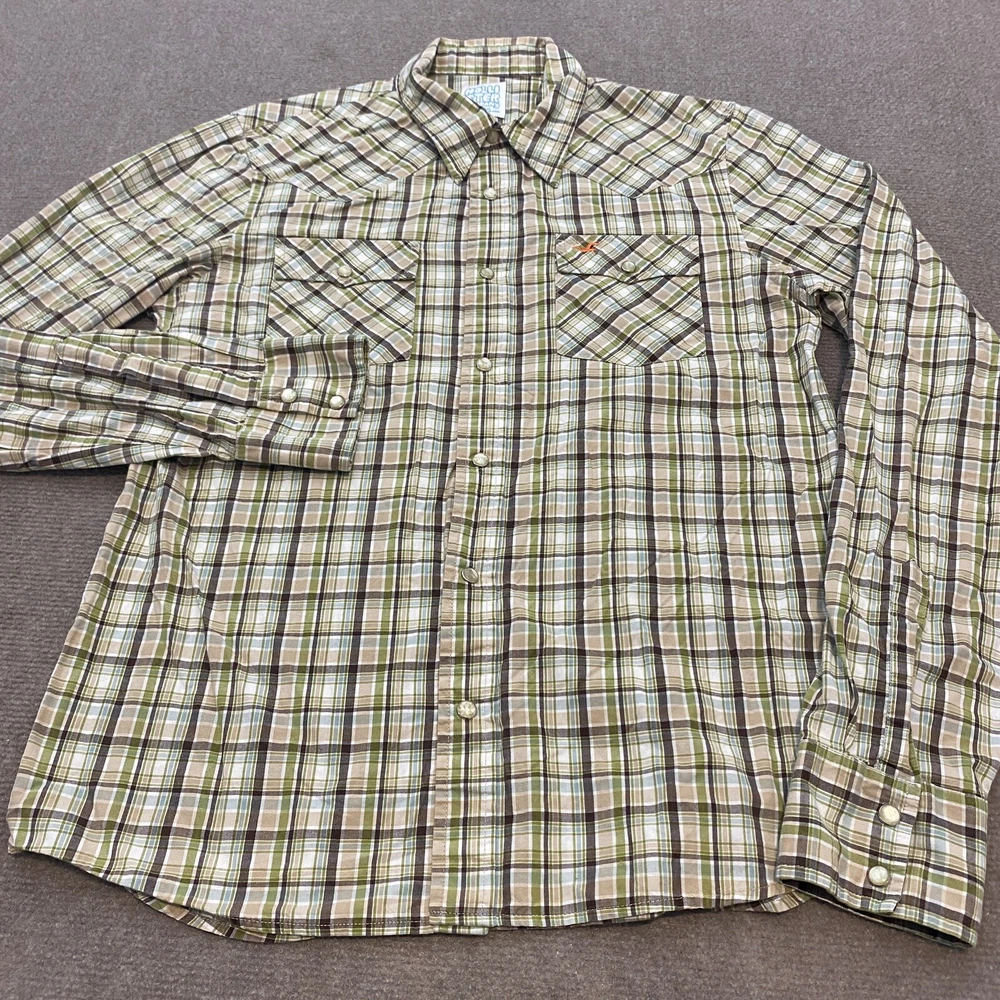 Hollister Western Shirt Mens Medium Plaid Pearl Snap Long Sleeve Rockabilly
