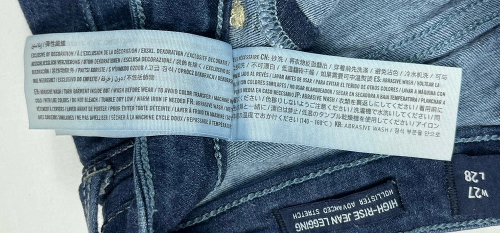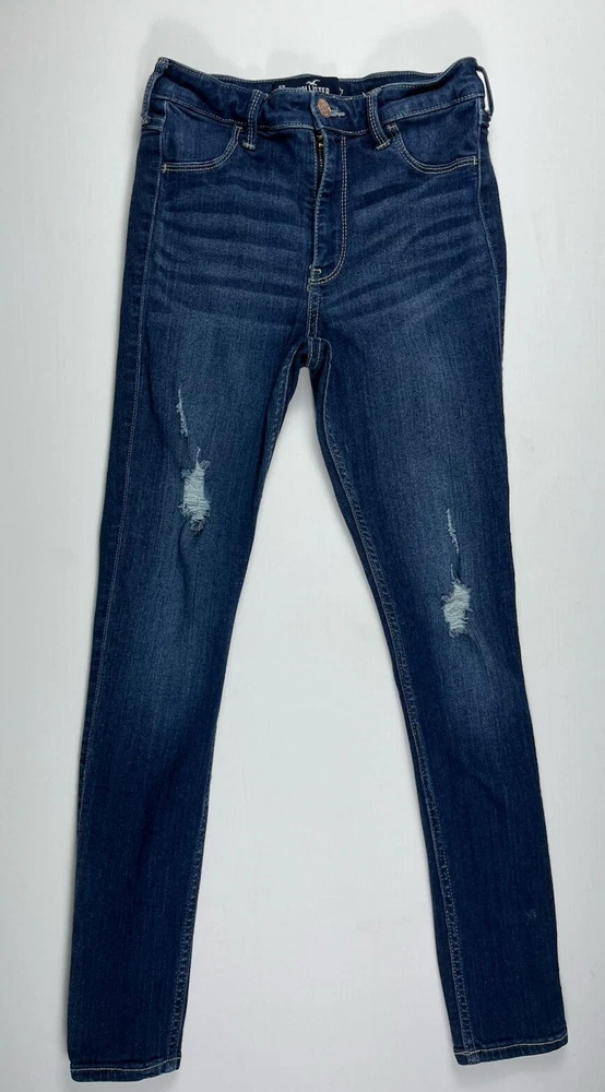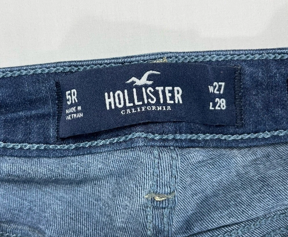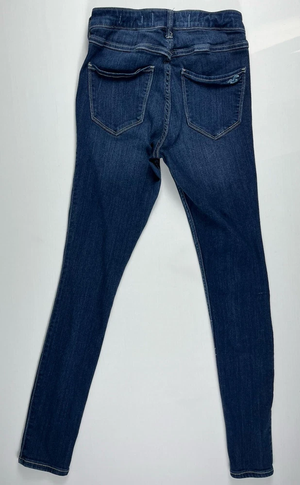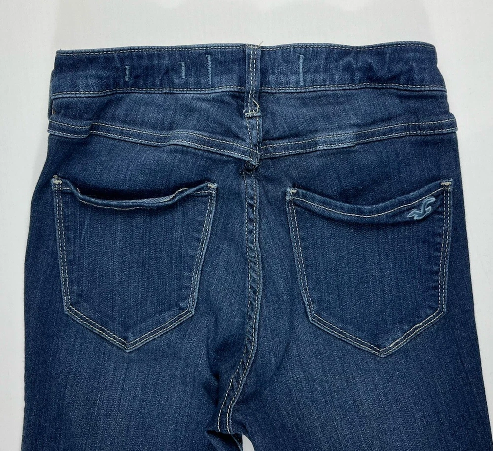 Pattern: Solid Type: Jeans Product Line: Hollister High Rise Jean Legging Size Type: Juniors Fabric Wash: Dark Season: Winter, Summer, Spring, Fall Closure: Button, Zip Inseam: 27 in Material: Cotton, Modal, Polyester, elastane, Viscose Garment Care: Machine Washable Vintage: No Model: Hollister Jeans Size: 5 Fit: Slim Brand: Hollister Fabric Type: Denim Department: Women Color: Blue Features: Stretch Waist Size: 24 in Style: Jean Legging Rise: Low (6.5-8.5 in) Accents: Button, Logo