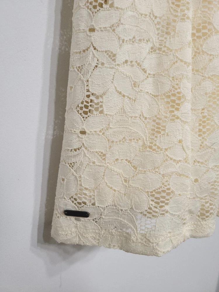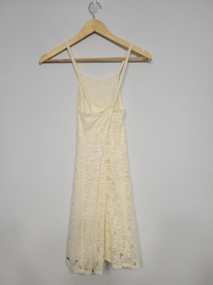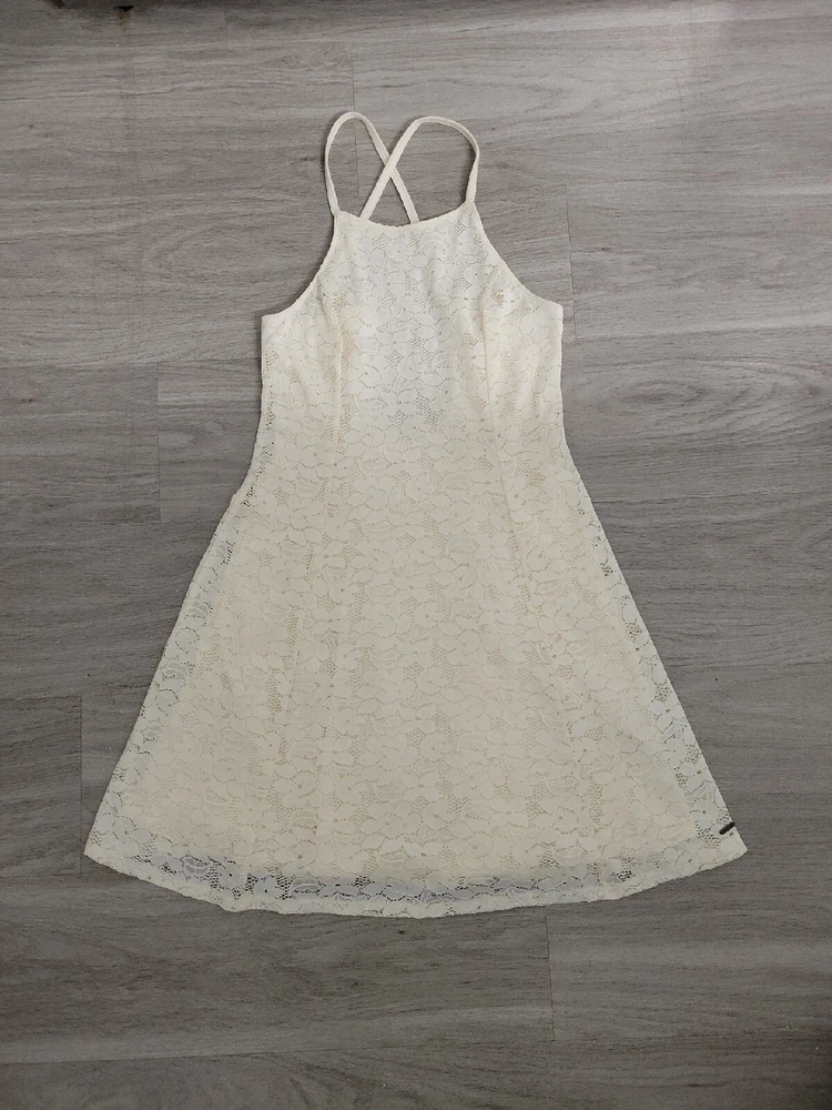Hollister Women's Dress Size Small Cream Floral Lace Criss-cross. Pre-owned great condition Nylon cotton elastane Cream color 15 inches across 28 inches long G4F