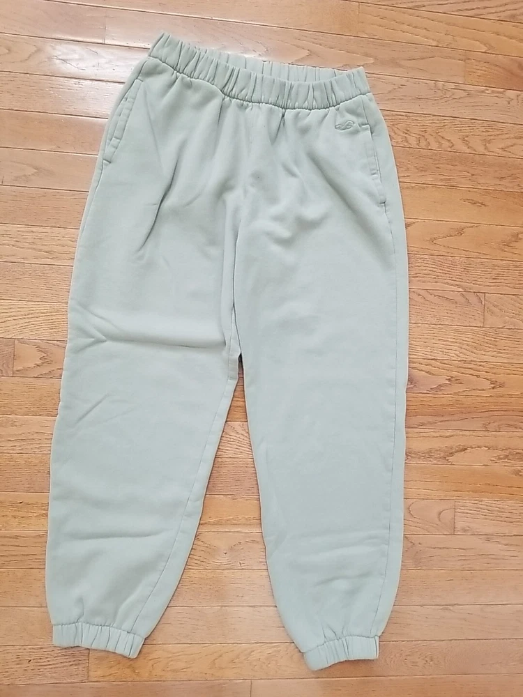 Fabric Type: Fleece Accents: Logo Features: Elastic Waist Type: Pants Closure: Pull On gtin13: Does not apply Handmade: No Garment Care: Machine Washable Inseam: 28 in Size: M Fit: Regular Style: Jogger Color: Green Department: Women Brand: Hollister UPC: Does not apply Rise: Mid (8.5-10.5 in) Occasion: Casual, Travel Personalize: No Waist Size: 31-32 in Size Type: Regular Country/Region of Manufacture: Indonesia Material: Cotton, Polyester