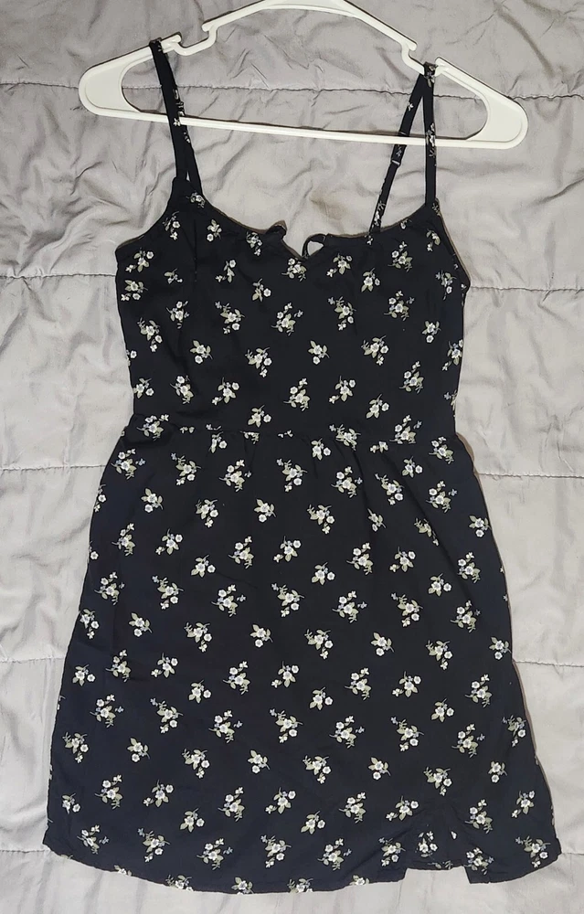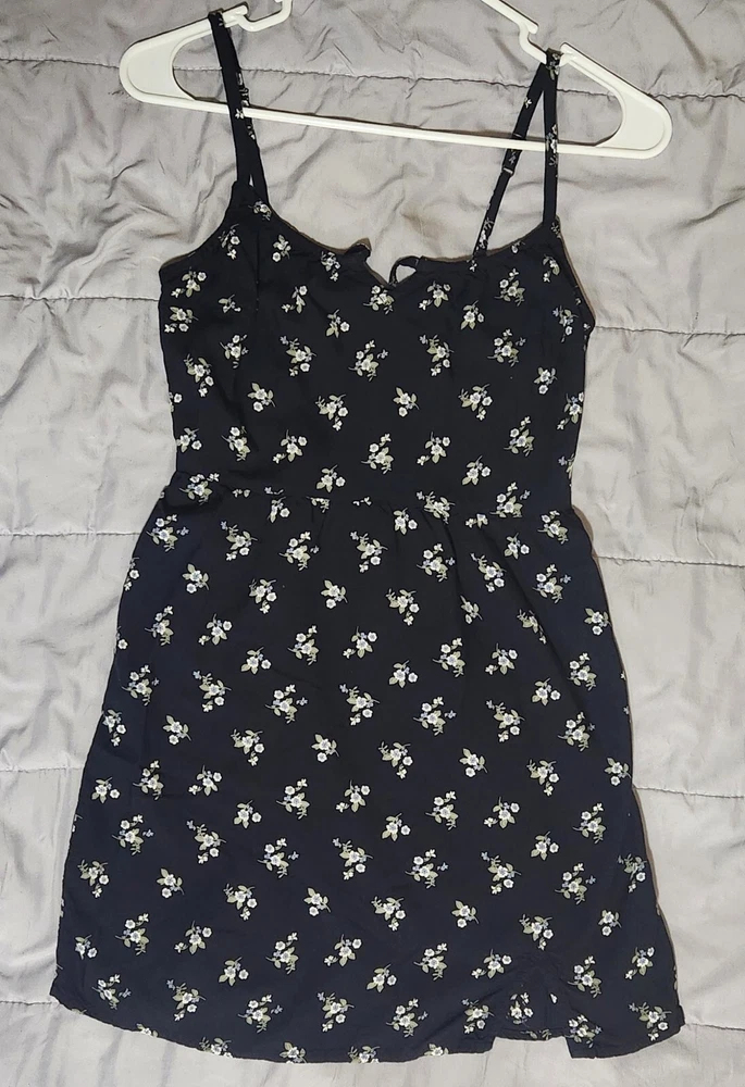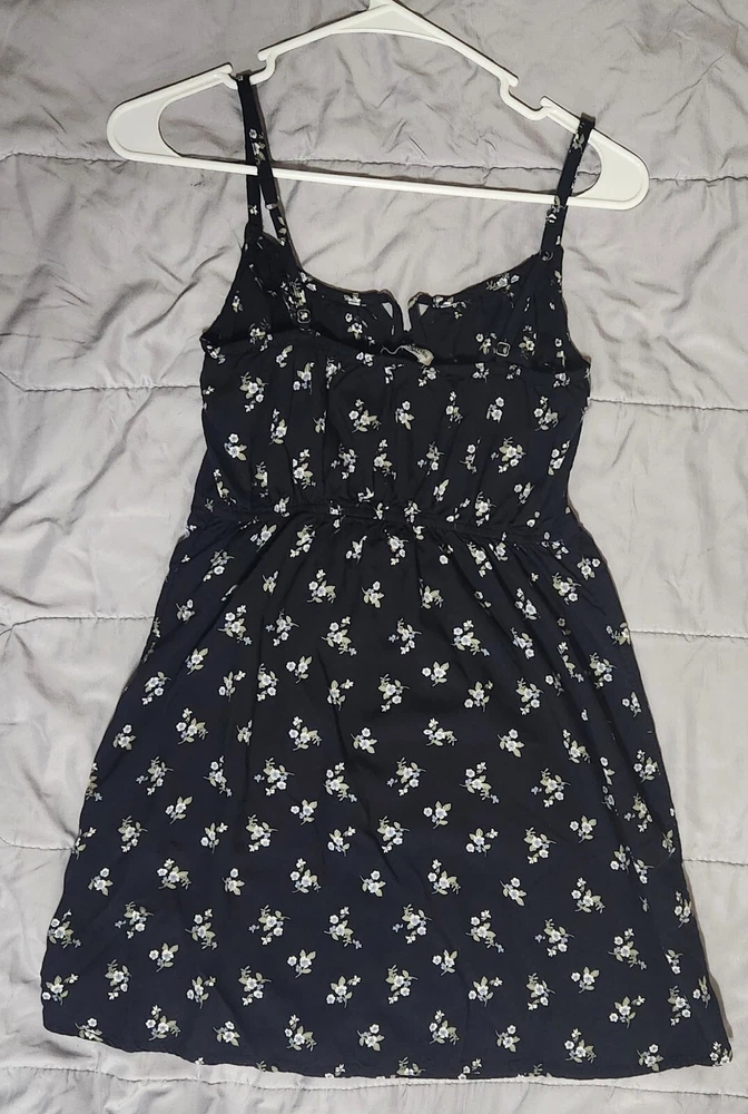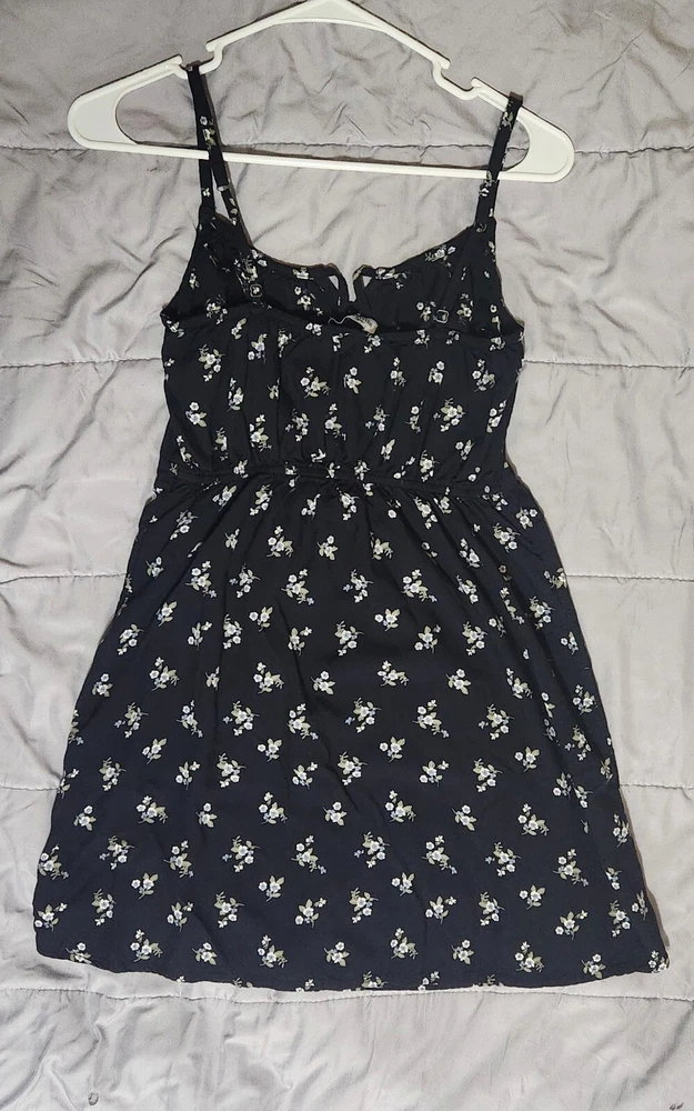 Hollister Womens Small Black W/ White&Blue Flowers Spaghetti Strap Dress