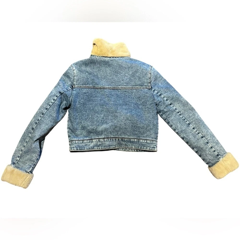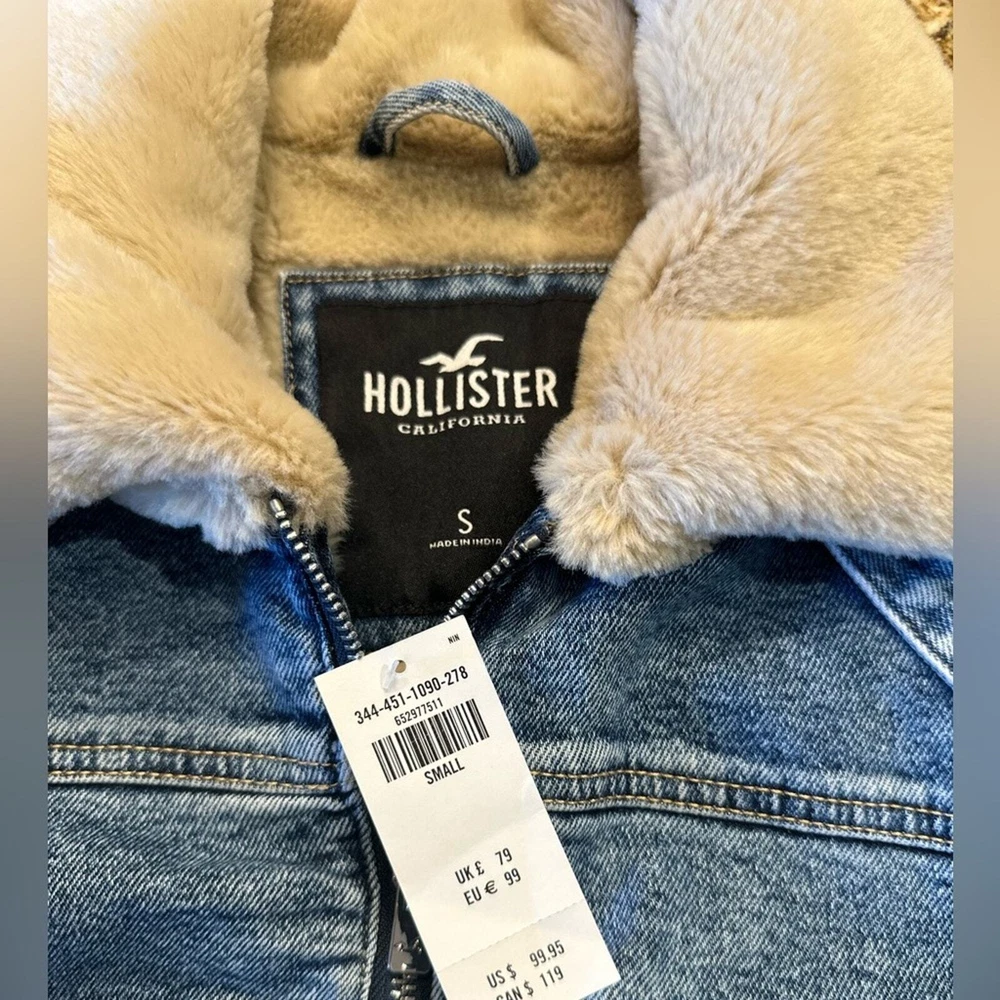 This is an absolutely adorable little jacket by Hollister. Women’s size small denim jacket has a faux collar cuffs in lining. Coat is brand new with tags attached.