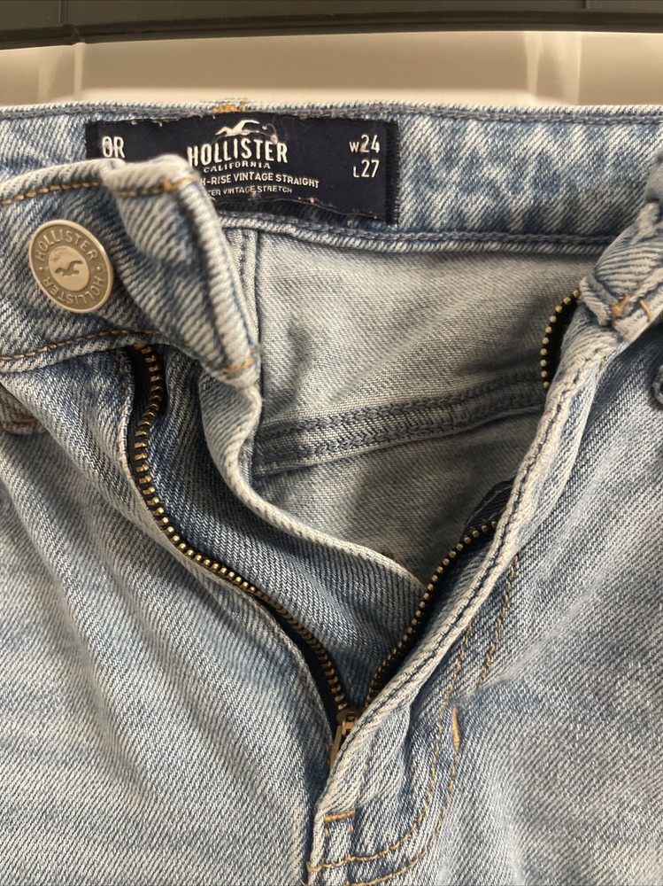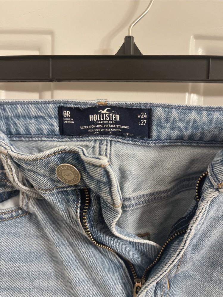 Hollister W24 L27 Ulta High Rise Distressed Stone Wash Blue Jean Women. Condition is Pre-owned. Shipped with USPS Ground Advantage.
