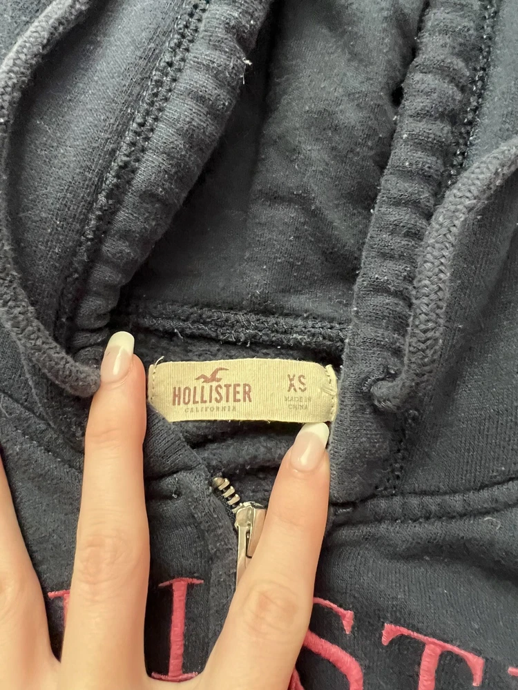 Hollister ZipUp Hoodie with Pockets in Navy Blue with Pink Wording Size X-Small