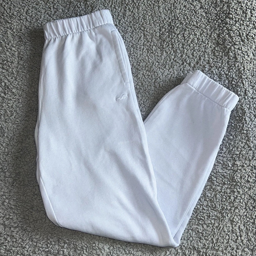 Hollister baby blue cuffed ankle joggers Size small Lovely joggers, selling due to a clear out. Fading on inside label due to washing. Small mark on them on back but very faint- photographed.