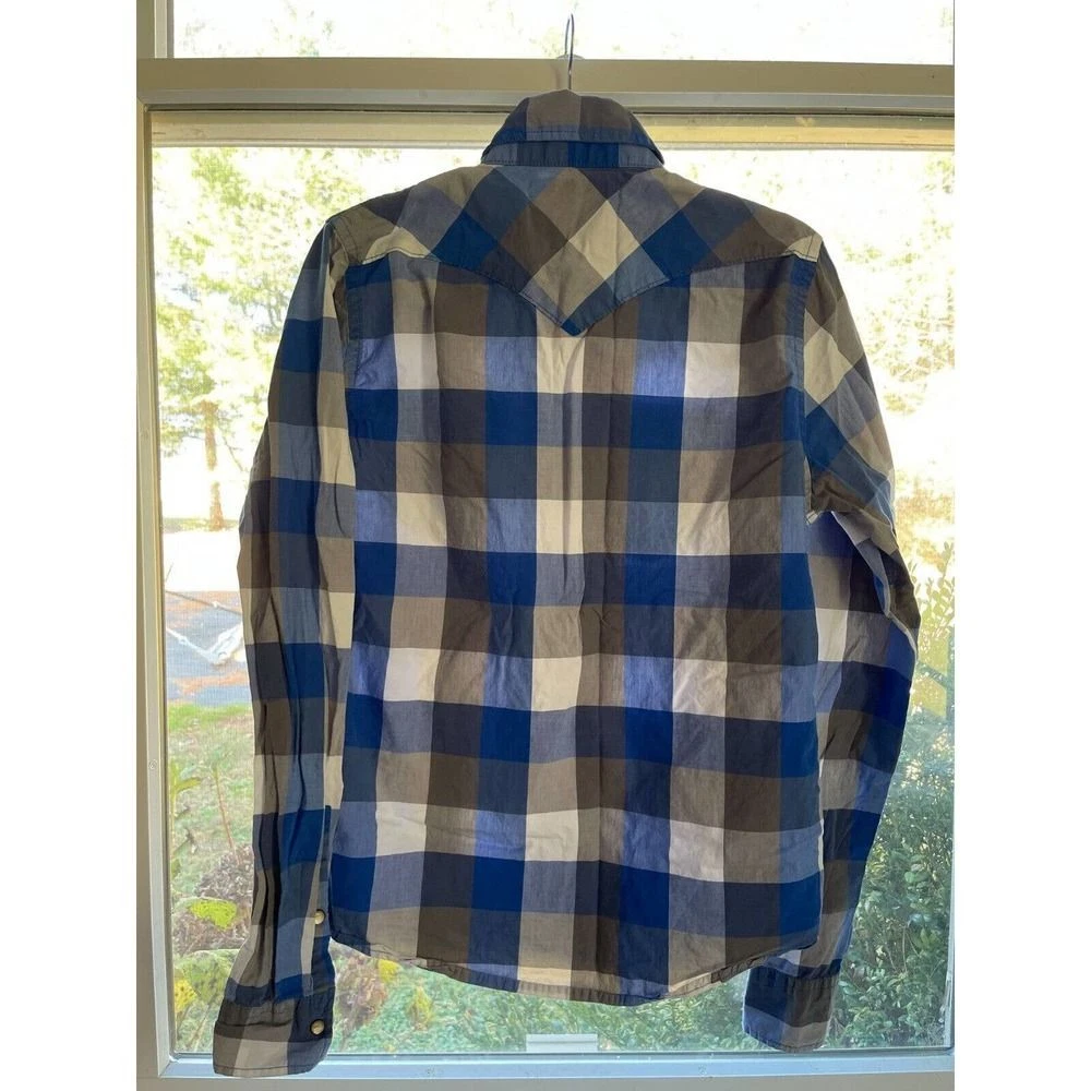 Elevate your style with this Hollister button-up shirt. The blue and white checkered plaid pattern adds a pop of color to your wardrobe and the embroidered accents provide a unique touch. This shirt features a collar and button-down closure, making it suitable for a variety of occasions including travel, parties, work, and casual wear. The M size shirt is made of a comfortable spandex and cotton woven fabric that is machine washable and easy to care for. With long sleeves and a button-down collar, this shirt is perfect for all seasons and can be paired with jeans or dress pants. Add this colorful and trendy shirt to your collection today!