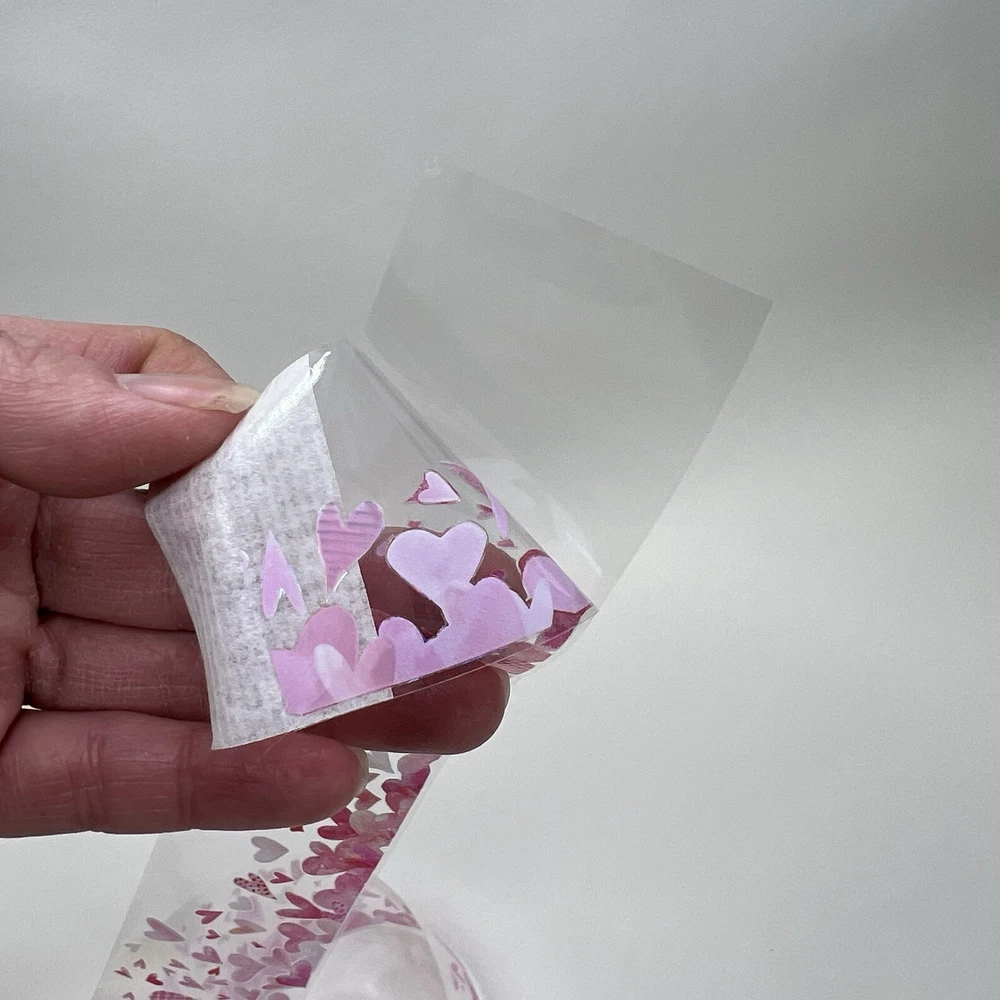 This is a clear adhesive tape with a clear peel off backing. Holographic foil accents. 5cm width X 2m length. I have more stickers, washi tape and paper for sale. I do combine shipping. Please put all the items you want to purchase in ONE cart and then pay. I will refund you the difference in shipping after shipping label is printed. Let me know if you have any questions through eBay messaging. Thank you for stopping by!
