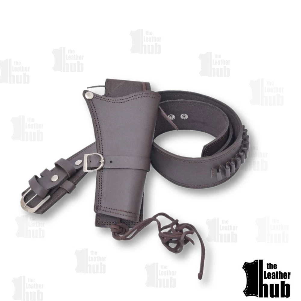 Holster Belt Cowboy Style Gun Revolver Single Plain Brown Leather High Qualität This product data sheet is originally written in English. Cow boy style single holster belt Brown colour TheLeatherHub Holster Belt is a cowboy-style gun holster made from genuine brown leather. It includes a single holster with an adjustable belt. Suitable for revolvers and pistols, this ambidextrous belt features adjustable straps and is lightweight and multifunctional. Our most sizes can easily fit up to 1 size up or down. Made in the United Kingdom, this high-quality holster belt is perfect for shooting SPORTS, weighing 800g and measuring 7.5 cm in width. The belt will last forever if handled and stored carefully, for longer life store in a dry place and clean with damp or dry cloth. Please refer to our size guide to check you required size before buying. Bulk orders are welcome at a special discounted price Cow boy style single holster belt Brown colour TheLeatherHub Holster Belt is a cowboy-style gun holster made from genuine brown leather. It includes a single holster with an adjustable belt. Suitable for revolvers and pistols, this ambidextrous belt features adjustable straps and is lightweight and multifunctional. Our most sizes can easily fit up to 1 size up or down. Made in the United Kingdom, this high-quality holster belt is perfect for shooting SPORTS, weighing 800g and measuring 7.5 cm in width. The belt will last forever if handled and stored carefully, for longer life store in a dry place and clean with damp or dry cloth. Please refer to our size guide to check you required size before buying. Bulk orders are welcome at a special discounted price For Gun Make Heritage For Gun Make Navy Arms For Gun Make Remington For Gun Make Revelation For Gun Make Smith & Wesson For Gun Make Uberti Number of Cartridges N/A Carry Location Belly Band Carry Location Belt (OWB) MPN 003 Material Leather Set Includes Double and Single Holster with Belt. Colour Brown Brand TheLeatherHub Handedness Ambidextrous Type Holster Belt Manufacturer Warranty 1 Year Attachment Type Belt Model Genuine Leather Features Adjustable Straps Features Lightweight Features Multifunctional Level Level 1 For Gun Type Pistol For Gun Type Revolver Cant N/A Carry Position 1 o'Clock Country/Region of Manufacture United Kingdom Sport/Activity Shooting Item Width 7.5 Cm Item Weight 800g Gauge/Calibre N/A