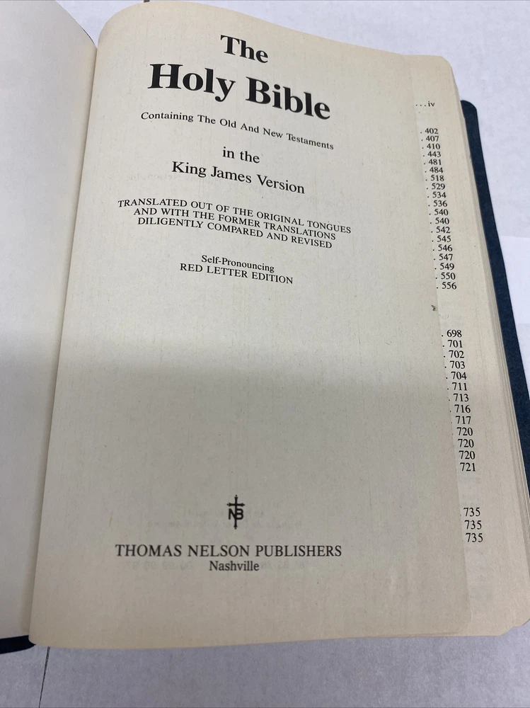 Holy Bible Dictionary Concordance Red Letter Edition King James KJV Nelson 1984. Does have name marked out on first page. Rest of book in great condition.