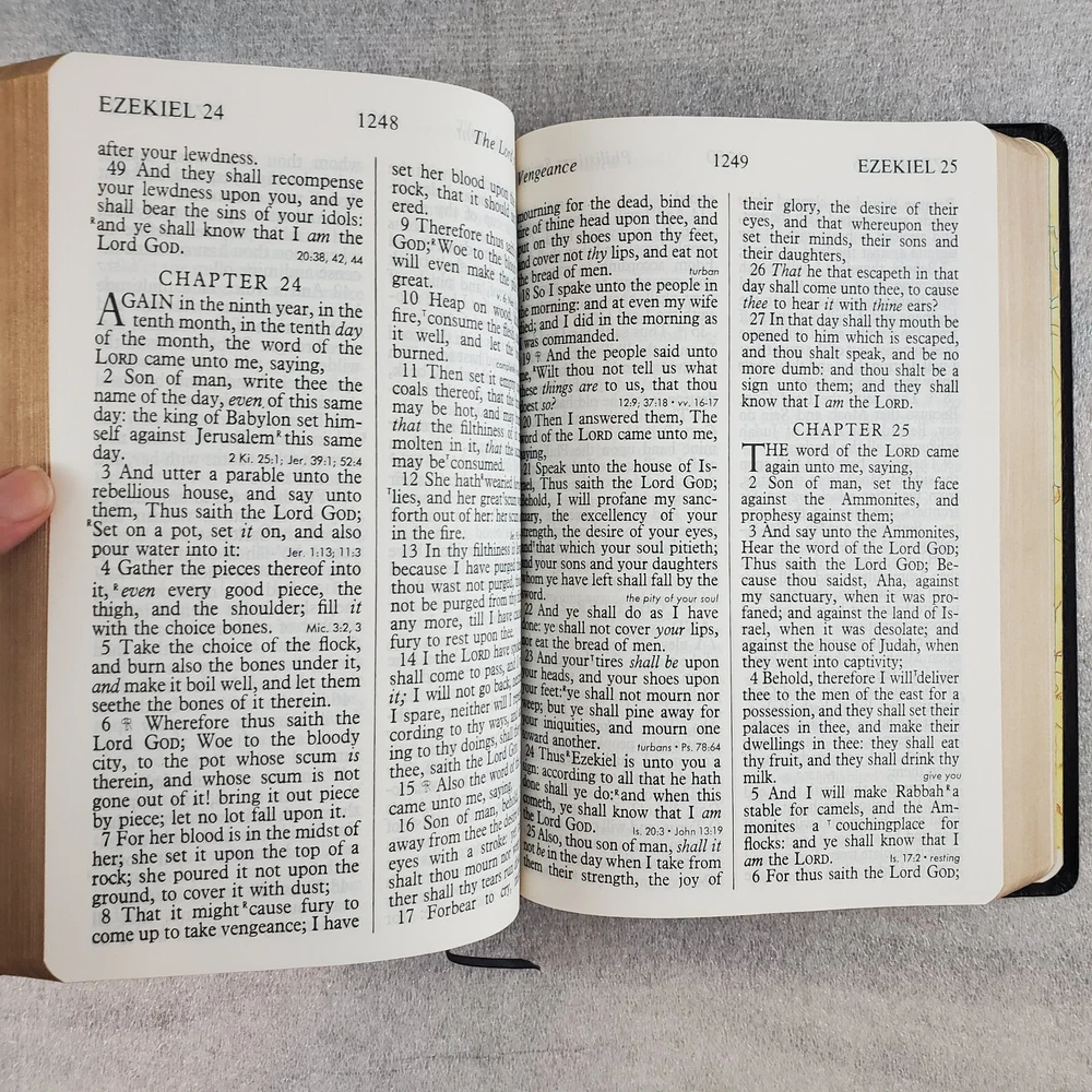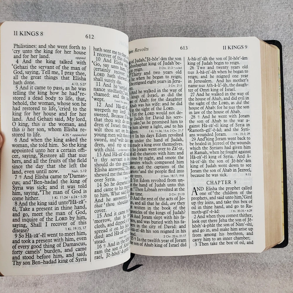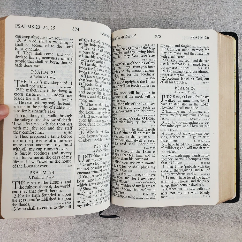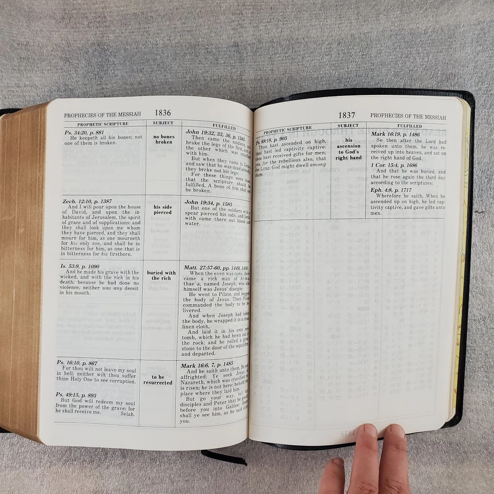 Holy Bible Living Word Riverside Giant Print Concordance Red Letter Reference Ed Opening page is a little loose from the edge (see photo). There is a small bit of wear to the cover. No writing, highlighting, underlining or marking found flipping through the book. Pages appear clean. Please view the photos carefully for condition details. Don't forget to check out the other items in my shop. I'm getting in new fun things all the time. Thank you for looking! Have a great day!