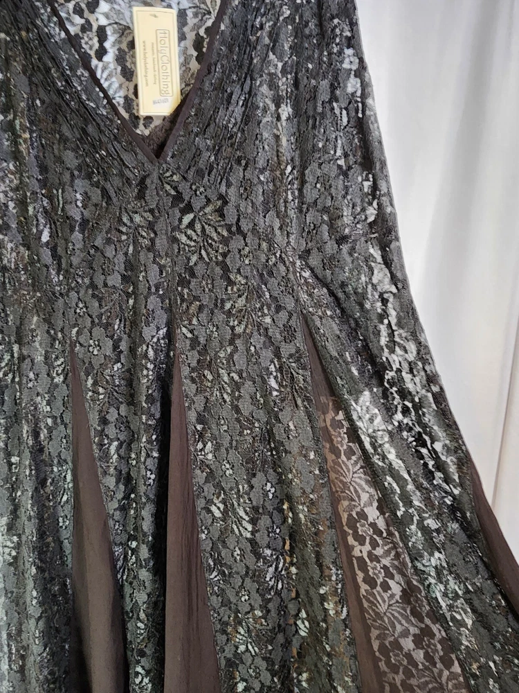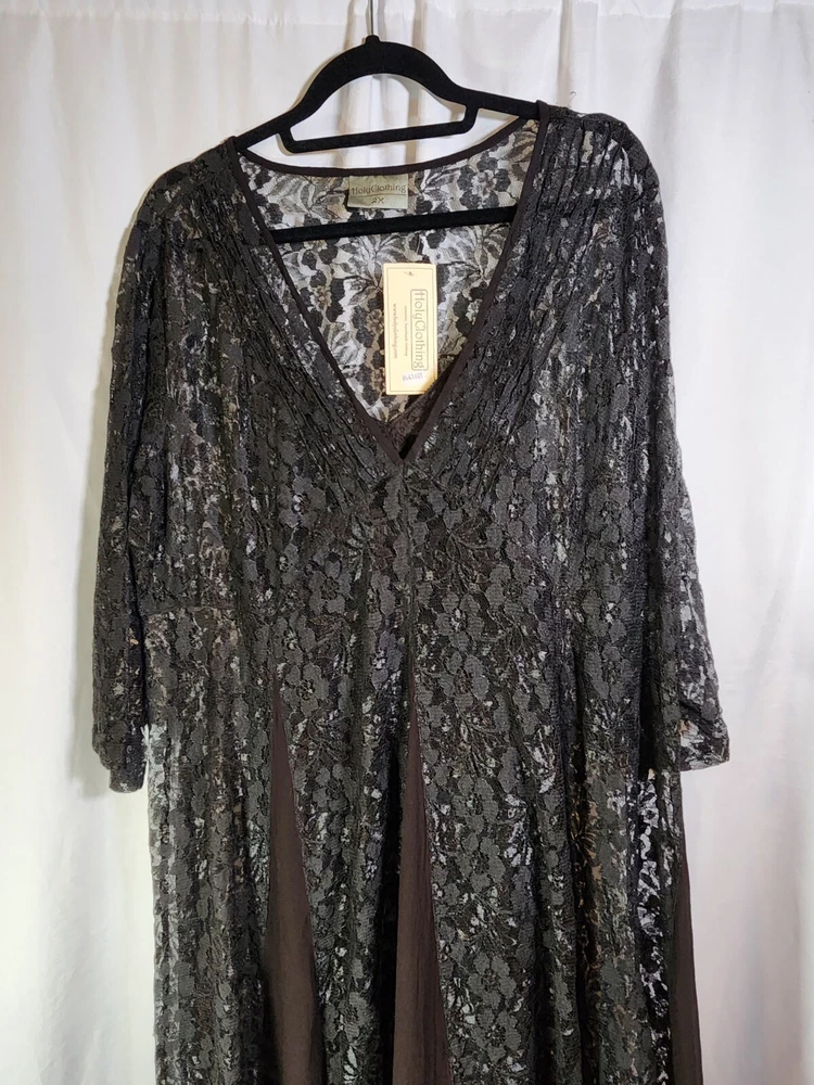 Description: Brand: Holy Clothing Condition: Brand New with Tags Style Name: Tamara Maxi Color: Black Midnight Size: Women's 2X, Regular Length Details: 100% Rayon with Nylon Floral Lace Inlays Includes Lace Overdress and separate Black Cotton Terry Voile Cami with Adjustable Straps Gothic Godet Bodice Victorian/Boho/Ren Faire/Romantic Style Flowing Silhouette Exclusive HolyClothing design. Ethically handmade in India. We are delighted to offer you this beautiful Tamara Maxi Dress. I t's part of our Holy Clothing collection of brand new items with tags. We match website pricing - and all of our Holy Clothing items are ready to ship immediately, unlike items purchased from the Holy Clothing website, which generally take 3-4 weeks to ship. This particular style is retired/discontinued and no longer available on their website, either. Please note that the photos shown are both stock photos (shown on a model), and photos of the actual item you will receive. Please review all of them and ask any questions before purchasing. We are a husband and wife team with a growing family, and we greatly appreciate your support of our small business! Please visit our eBay store to shop our Holy Clothing collection, including some retired and hard-to-find styles. We look forwarding to having you enjoy this lovely piece!