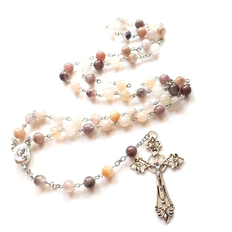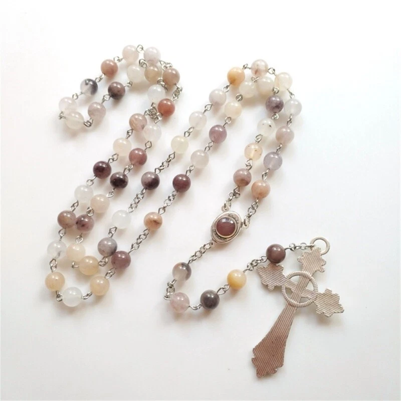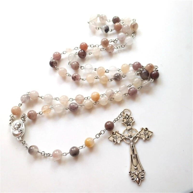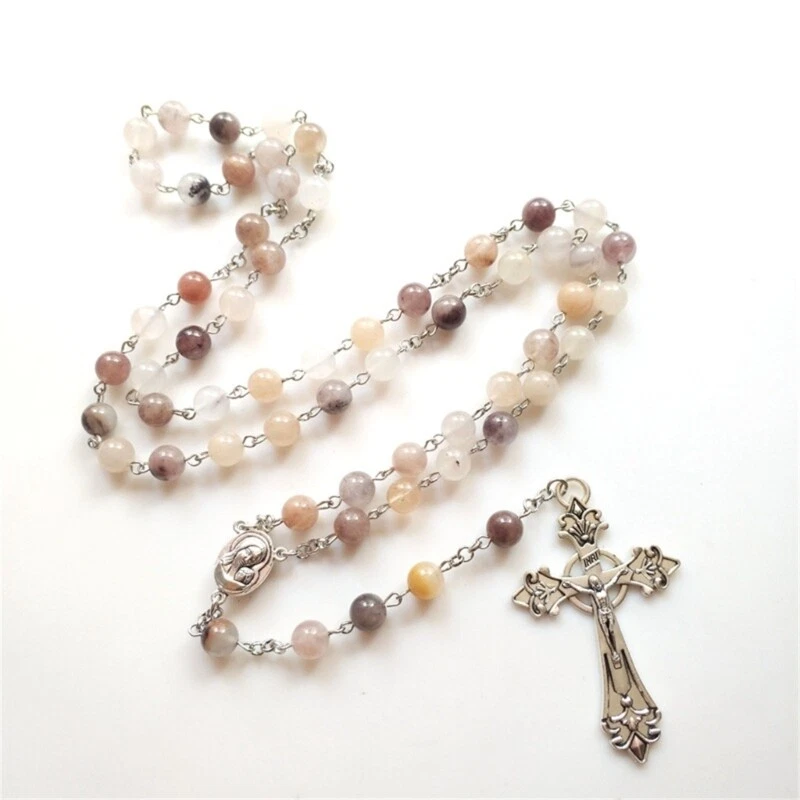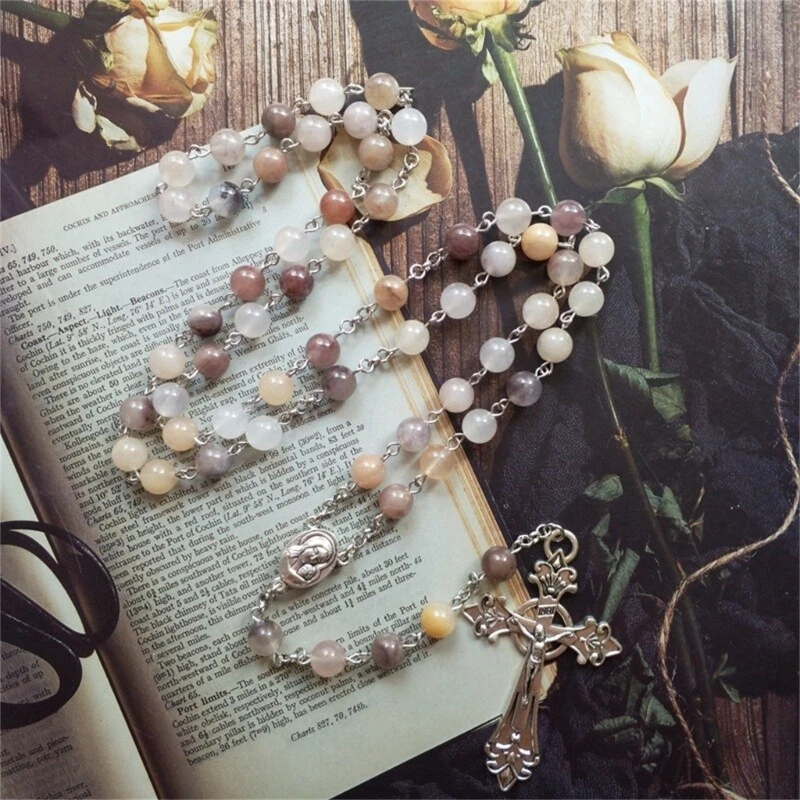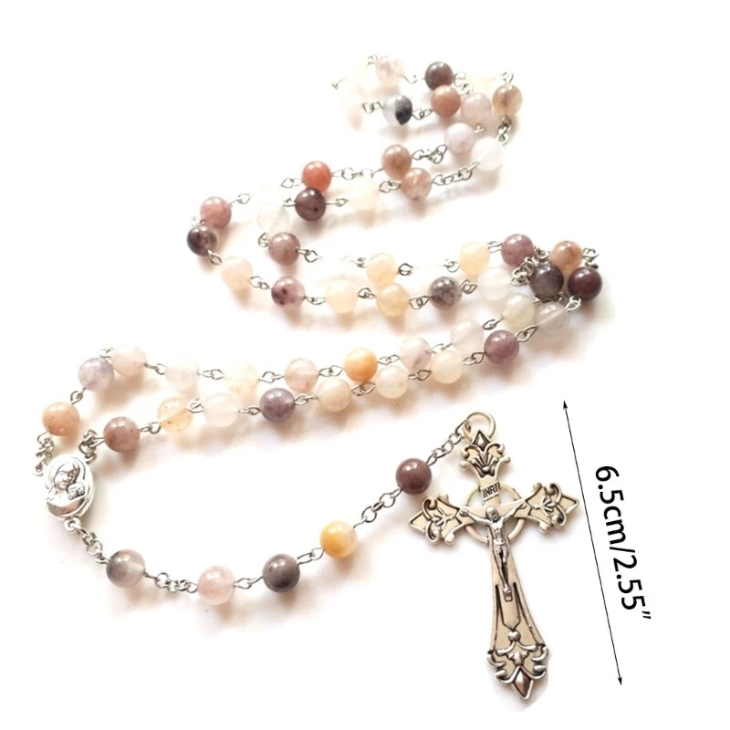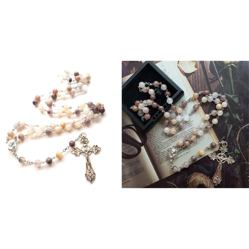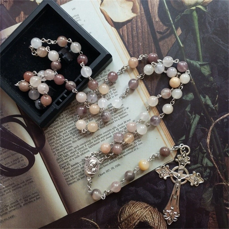 Holy Jewelry Nature Stone Cross Rosary Necklace Charm Ornaments