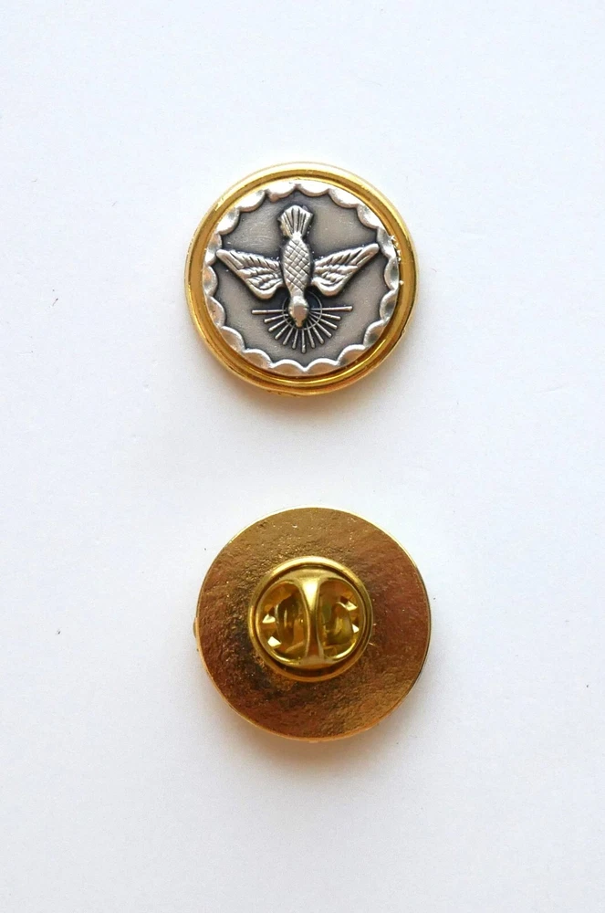 Beautiful Holy Spirit Silver-Gold Tone Round Lapel Pin *MADE IN ITALY * DIAMETER: 13/16" COLOR: Silver-Gold MATERIAL: Silver-Gold Tone alloy Come Visit Us at Our New Store! Please feel free to email me with questions about this item. Also please check my other listings. I am always available to answer your questions promptly. Buy from us with confidence.