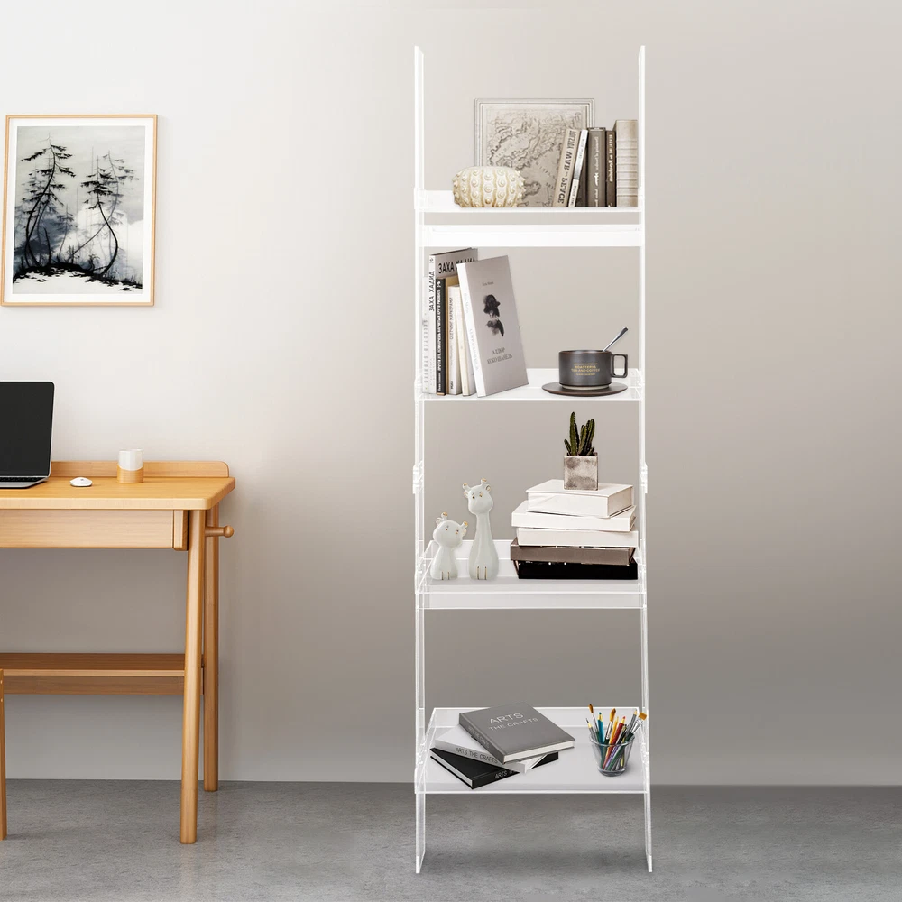 Home 4-Tier Ladder Bookshelf – Freestanding Acrylic Bookcase, Frame 52 cm*183 cm Description This ladder bookshelf is an excellent addition to your home. Its 4-tier design is designed to provide you with ample storage space, offering a variety of configuration options for your book and item storage solutions. This bookshelf is convenient for storing your precious collectibles and making your living space neater. Key Features Build to Last : High-quality acrylic with laser adhesive bonding process makes this product hard, environmentally friendly, and not easy to rust, so it can be used for a long time. Ample Storage Space : With its 4-tier construction and suitable tier spacing, this bookcase offers plenty of storage space for your books. You can sort your books into different categories or store books, toys, cosmetics, plants, and decorative items (all not included) on separate tiers. Excellent Space Utilization : With its unique ladder design, it makes full use of the vertical space and makes it suitable for small flats, dorm rooms, or other areas where space is limited. High Stability : The tilting design for easy leaning against the wall. The stepped shape, and thickened material (5mm, 8mm) enhance the overall load-bearing and stability of the product, providing greater security for your book display and collection. Exquisite Gift : This functional and aesthetically pleasing product is an ideal gift for Christmas, birthdays, housewarming, etc. Convenient to Install : Multiple reinforcement screws, pre-drilled holes, and complete accessories allow you to complete the installation and start using it in a short period. Stylish Outlook : The pleasing clear look and smooth lines make this product modern and stylish, blending easily into most home styles. Effortless Cleaning : With its open construction and smooth surface, you can simply rinse it with water or wipe off surface dust with a damp rag. Good Customer Service : We stand behind all our guests and look forward to assisting you with your purchase. It is our pleasure to answer your confusion and questions. The end of the story between us is not "we sell and you buy". Details Open Storage Compartment : Open storage compartments make it possible to display your books and other collectibles, and allow for easy access. Smooth Surface : The product has a smooth, flat, burr-free surface, making it safer to install and clean. Guardrails : Raised guard rails on the tray prevent items from slipping. Application It is suitable for study, office, kitchen, bedroom, and living room and can be used to organize books, plants, cosmetics, office supplies, stationery, documents, and other personal belongings. Specifications Material: Acrylic Shape: Trapezoid Process: Laser Adhesive Bonding Shelf Type: Ladder Shelf Style: Modern Color: Clear Mount Type: Floor Standing Assembly Required: Yes Number of Tiers: 4 Tray Thickness: 5mm/1.97in Support Frame Thickness: 8mm/0.31in Compartment Width (From Bottom to Top): 36cm/14.17in, 30cm/11.81in, 25cm/9.84in, 20cm/7.87in Tier Spacing: 41cm/16.14in Height of the Lowest Tier Above the Ground: 25cm/9.84in Total Product Size(W*H): 52*183cm/20.47*72in Gross Weight: 25kg/55.12lbs Net Weight: 24kg/52.91lbs Package Size: 100*50*30cm/39.37*19.69*11.81in Package Included 1* Ladder Bookshelf All Accessories for Installation Notes Please note that this product does not include books and other decorations. Please allow the slight color difference caused by the shooting light and the 1-3 cm error due to manual measurement, and make sure you do not mind before ordering. Payment Delivery details Terms of sales About us Contact us Payment We accept ebay payment 。 Fees such as import duties, taxes are not included in the item price or shipping costs. These charges are the buyer's responsibility. Delivery details Shipping: 2-9 working days to: USA Terms of sales We maintain high standards of excellence and strive for hundred percent customer satisfaction. Feedback is very important to us. We hope that you contact us immediately before you give neutral or negative feedback, so that we can address your concerns. It is impossible to address issues if we do not know about them! About us Your satis faction is our ultimate goal. We work hard to earn your trust and future business. Our certified technicians have tested each item before shipping. The unit comes with 1 year limited warranty on all manufacturing defects. a) If you receive a defective item, you may return it or ask for a discount. Please contact us within 14 days after you receive the package. b) What you returned must be intact and in its original packaging as re? u. Customer is responsible for shipping costs of the returned item. c) We will cover the cost of shipping back t with the shipping rate indicated in the registration page. We will send you a new unit or refund the full payment you paid. Thank you. Contact us Business Hour Business Hour: Monday To Friday: 8:30 AM to 5:00 PM (Beijing China time) Due to time zones, our reply to your questions may not be immediately. But within above working time, we will reply your email within 24 hours. If it's non-workdays, please kindly be patient and wait till Monday. Please contact us with ebay message. Please feel free to contact us if you have any questions. Monday To Friday: 8:30 AM to 5:00 PM (Beijing China time) Due to time zones, our reply to your questions may not be immediately. But within above working time, we will reply your email within 24 hours. If it's non-workdays, please kindly be patient and wait till Monday. Please contact us with ebay message. Please feel free to contact us if you have any questions. Brand Unbranded Manufacturer Part Number Does Not Apply Item Height N/A Item Length N/A Item Width N/A Number of Shelves 4 Type Bookcase