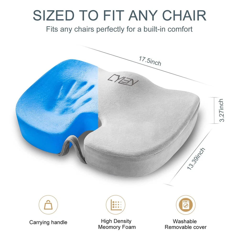 Tip: When do you feel the cushion is too hard? Our cushions are high-density memory foam cushions. The characteristic of high-density memory foam is that it changes with the temperature, so its softness and hardness will also change. The lower the temperature, the harder it will be. It has a critical temperature of 20 degrees Celsius. If it is below this temperature, it will become hard. You can put it in a warm place for about 10-15 minutes, and it will slowly return to its original softness. Or you can sit on the cushion for about 20 minutes and it will slowly become soft. Chair cushion to relieve pain? If you sit in the same position for a long time, your back, hips, and tailbone will become uncomfortable. desk chair cushion provides maximum support and comfort. High-density memory foam not only bounces back quickly but also reduces pressure on the tailbone and tailbone, promoting healthy posture and relieving your pain. However, being sedentary is still not advisable and no tool can help with 100% of the solution, our cushions can help you relieve your pain. The best advice is to get up and move around after a sedentary session to soothe your body and achieve optimal performance seat cushion size: 17.5 x 13.39 x 3.27 inches, Weight: 1.7 lbs GEL ENHANCED SEAT CUSHION - If you want premium high-density memory foam plus gel, our pick is the Gel Enhanced Seat Cushion. The memory foam is durable, comfortable, and long-lasting while the gel prevents the cushion from feeling too hot. A soft, machine-washable short plush cover makes it easy to keep clean. Non-slip rubber dots on the bottom means it won't slide out of your chair as you shift around QUITE PORTABLE CHAIR CUSHION - The carrying handle makes it easy to move from seat to seat and it's perfectly sized for a work chair or use in a wheelchair. Great for office, home, travel, car seat or wheelchair use. You can even use it outdoors, but the cover isn't waterproof, so save it for dry weather ERGONOMIC "U" SHAPED CUTOUT DESIGN - Whether you're working from home, sitting in an office chair, a car or truck, or any kind of seat at all, the U-shaped cutout for your tailbone is specifically designed to maximize comfort and support while reducing pressure on your tailbone. The office chair cushion can make your day more enjoyable and keep away those aches and pains IT’S A COMMON BYPRODUCT OF FATIGUE - You might slouch or begin leaning forward at an uncomfortable angle at your desk, and you might not even register the discomfort right away because your mind is intently elsewhere. This comfort seat cushion features ergonomic design to help soothe already-existing aches and pains that came about after months or even years of slouching and leaning TIPS - Since it’s made of high-density memory foam, keep in mind that the firmness of the cushion can be affected by temperature fluctuations. Especially in cold weather, many users mention removing the cushion from the car; otherwise, it can become firm and hard and won’t return to its soft, supportive state until the material warms up again