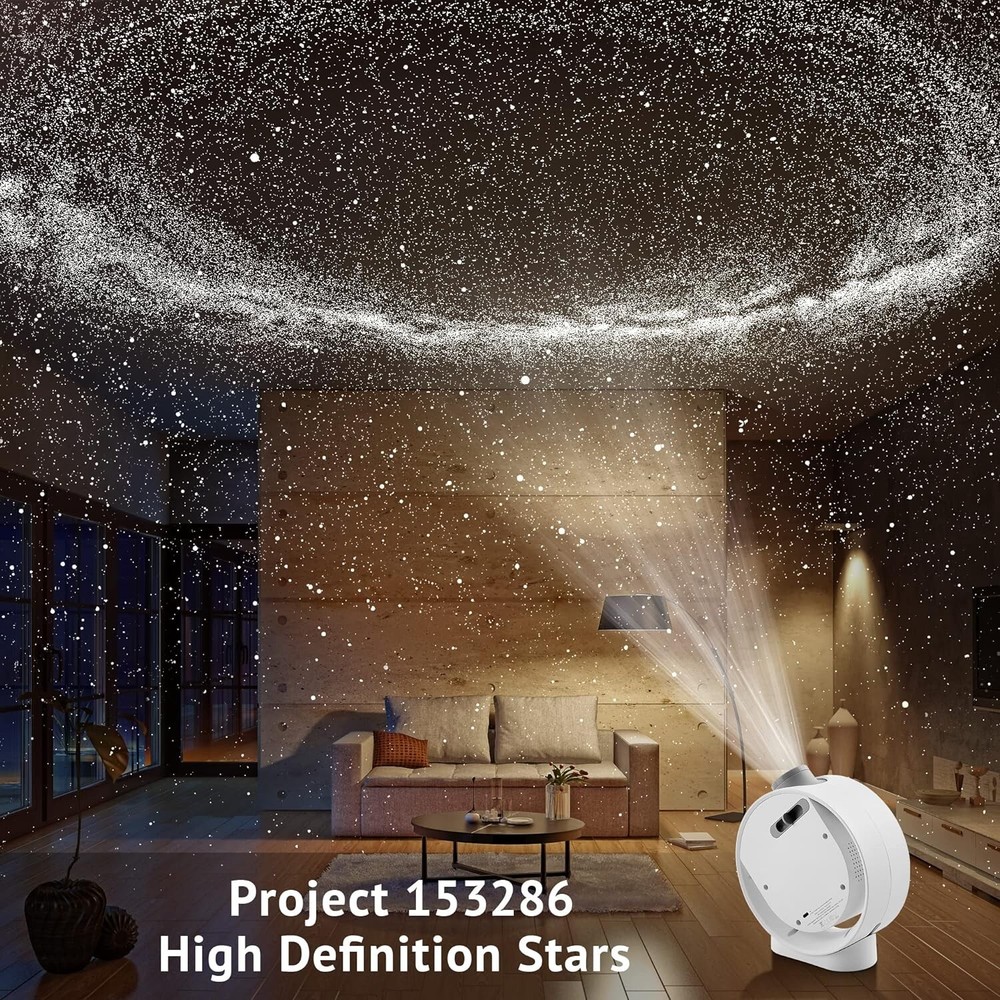 Home Planetarium Star Projector, Ultra Clear Galaxy Projector with 130 ft² Projection Area, Auto-Off Timer, Remote Control, Night Light for Room Decor, 6K Discs, for Kids/Adult Gifts Ultra HD Image Experiences: Star projector uses 8 sets high light transmission (LTR) optical lens and 3 Level light adjustable green laser light. Our galaxy projector has an ultra-large projection area of up to 130 square feet which provides an incredibly lifelike image, you may enjoy the happy time with your family or friends at home. Great gift ideas & Halloween decorations : lights for room decor available 4 adorable colors and elegant industrial design, and they are great gift ideas for both adults and kids. It's perfect for game room (area), kids’ room, Halloween decorations, Christmas decorations, home theatre, birthday, party decorations, and anniversary. A fantastic present for finspiring kid's imagination, decorations party, meditation time, and suitable for all family members. Immersive Room Decor Experiences: Night Light projector brings instant mood ambiance to the party, gaming room, meditation space,bedroom,kid’s room, or any room of your home. You can also use the projector on your kid’s bedtime stories. Enjoy dining under the stars, create a relaxing spa environment, or accent your home theater in seconds. Our company will release more film discs. (new release disc not include in the projector) 4 Pack Mini 6K HD Realistic Planetarium Disc: The led lights for bedroom decor include 4 packs Ultra high defination optical slides with at least 6000x6000 resolution, Milky Way; The Earth&Moon; Carina Nebula; Obiting the Moon. Southern Hemisphere disc project 150000+ high definition stars, opening the project you will immersing in the splendid galaxy. Enjoy realistic nebulaic psychedelic area of space journey. Transforms any comfort rooms into a planetarium with the starry night sky. User-friendly and artistic Design: Inspired by the new moon, the star light for room decor uses a half-moon shape hollow-carved design. The star projector comes with infrared remote control. projector provides 0-90° adjustment that increases the usability of the projector. You can switch projects between ceiling and wall. The projector has an auto-off timer which you can set to turn off after 10, 30, 60 minutes. You do not need to worry about leaving it on when trying to fall asleep.
