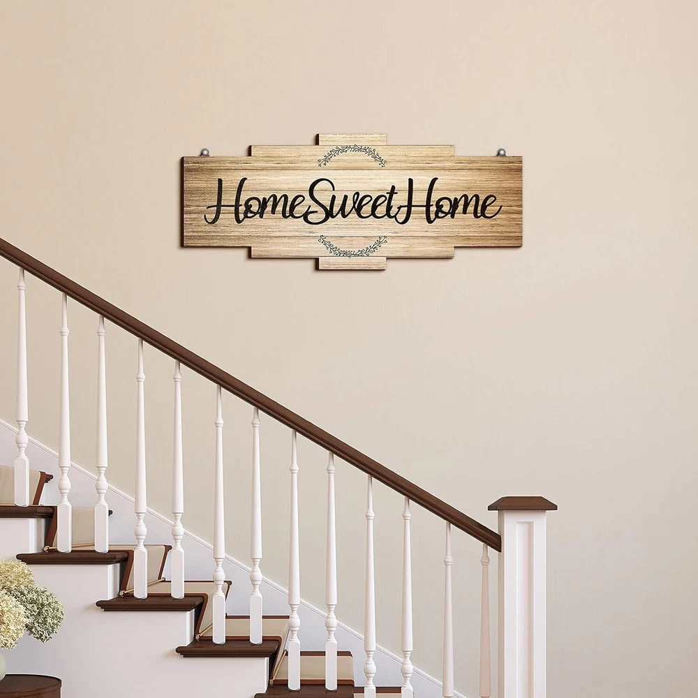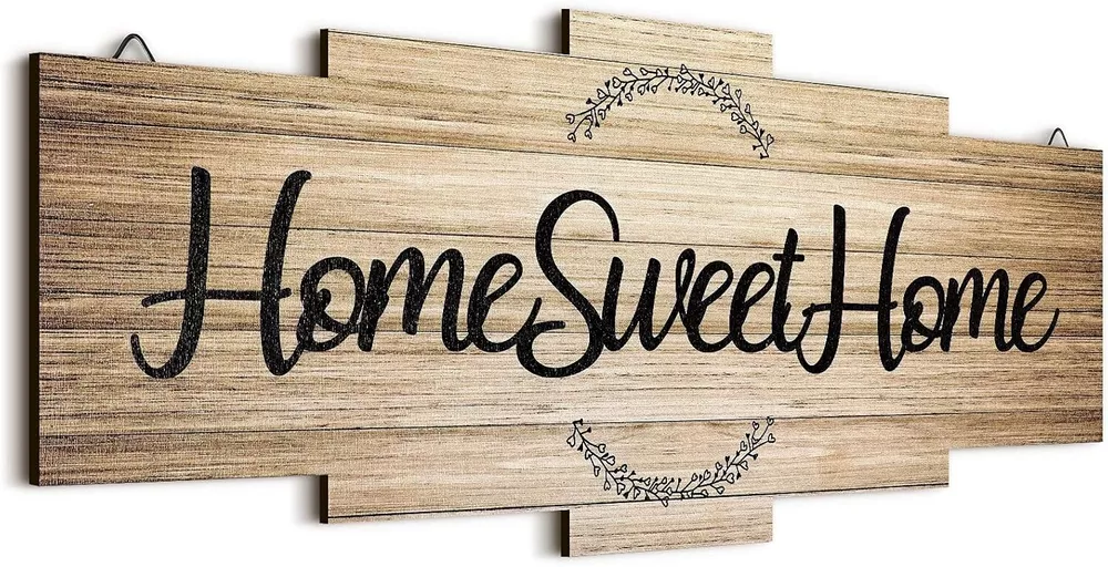 Home Sweet Home Sign, Rustic Wood Home Wall Decor, Large Farmhouse Home Sign Plaque Wall Hanging Wooden Sign for Bedroom, Living Room, Wall, Wedding Decor (Wood Color) About this item What You Will Receive: you will receive 1 piece home sweet home sign decor, which is printed with letters of [Home Sweet Home], and the sign comes with beautiful design and an irregular polygon, which looks delicate and warm, creating a full family atmosphere Durable to Use: made of quality wood that is close to nature, the wood home sign is safe and reliable, odorless and not easy to get corroded or broken, you can keep it for a long time as an exquisite home decor, making your home look modern and graceful Appropriate Size: the wood wall sign is approx. 40 x 16 cm/ 15.7 x 6.3 inches, and the thickness is approx. 5 mm/ 0.2 inches; The size of the letter and the wooden board are nicely combined to add an elegant touch to your home Heartwarming Gift: featuring rustic style and [Home Sweet Home] letters printing, this sweet home sign can be sent to your boyfriend or girlfriend, wife or husband, teacher or others you love as a sweet gift on birthday, New Year, Thanksgiving, etc Applicable Occasions: the back of this wall sign is intimately designed with 2 hooks, which is suitable for living room, bedroom, kitchen, office, hotel, dining room, bathroom, bar decor, etc., which will produce a cute decoration effect and make your home look warm and elegant