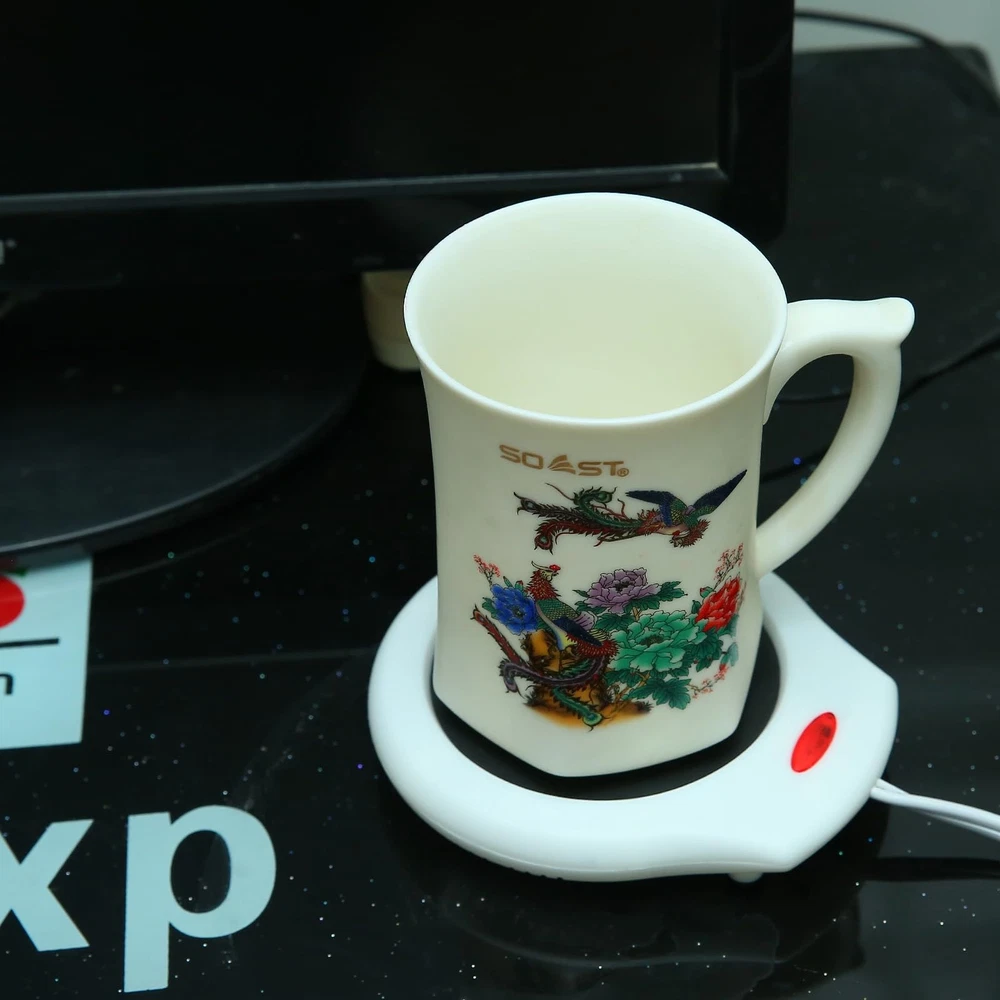 Home&Office Desktop Electric Mug Warmer-Coffee/Tea/Cocoa/Soup-Scented Candles Gift for Winter Multifunctional Design: This electric mug warmer can not only keep your beverages warm, such as coffee, tea, cocoa and soup, but also can be used to heat scented candles, allowing you to enjoy a warm atmosphere in winter. Two Colors: Contains two cup warmers in different colors, one white and one black, suitable for any decoration style, can be used at home and office. EASY TO USE: Just need to put the mug on the warmer, then connect the power. The automatic temperature control function of the device will keep the beverage at the optimal temperature, so you can enjoy hot drinks at any time. Safe and reliable: The device has a built-in overheat protection function, and it will automatically shut down when the temperature is too high to ensure your safety. At the same time, the non-slip pad on the bottom can ensure that the heater can be placed stably on any surface. IDEAL WINTER GIFT: This electric mug warmer is a perfect winter gift, whether it is used to keep drinks hot or to heat candles, it can bring warmth and comfort to winter.