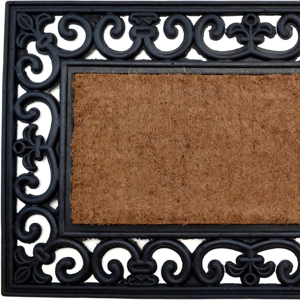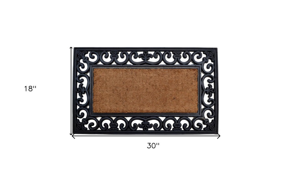 HomeRoots 18x30 Beige Black Rubber Coir Outdoor Door Mat