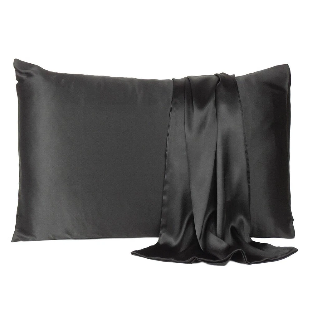 Bed head be gone! Protect your hair and skin with these delectably soft Silky Satin Queen Size Pillowcases. How have you lived thus far without these? Satin pillowcases are one of life's simple pleasures. They're great for your skin, helping to reduce facial creases and wrinkles, and they are great for hair, helping to prevent knots, matting, and frizzies. These pillowcase are made with high quality satin silk fabric for optimal softness and easy care. Designed not to pill, these cases also have an envelope closure for an attractive and easy way to get on and off for cleaning. 30" x 20" Queen Sizedue to the handrafted and hand-cut nature of this product, slight variations in size or color may occurmade for exceptional longevity.our satin pillowcase is made with high quality satin silk Free Shipping Over $49.99* Details HomeRoots Black Dreamy Set Of 2 Silky Satin Queen Pillowcases Product Description: Bed head be gone! Protect your hair and skin with these delectably soft Silky Satin Queen Size Pillowcases. How have you lived thus far without these? Satin pillowcases are one of life's simple pleasures. They're great for your skin, helping to reduce facial creases and wrinkles, and they are great for hair, helping to prevent knots, matting, and frizzies. These pillowcase are made with high quality satin silk fabric for optimal softness and easy care. Designed not to pill, these cases also have an envelope closure for an attractive and easy way to get on and off for cleaning. 30" x 20" Queen Size due to the handrafted and hand-cut nature of this product, slight variations in size or color may occur made for exceptional longevity. our satin pillowcase is made with high quality satin silk fabric for optimal softness and easy care. designed not to pill, these cases also have an envelope closure for an attractive and easy way to get on and off for cleaning. protects hair and skin - keep your hair safe from harm. queen sizelength-30" x width-20" wrinkle free