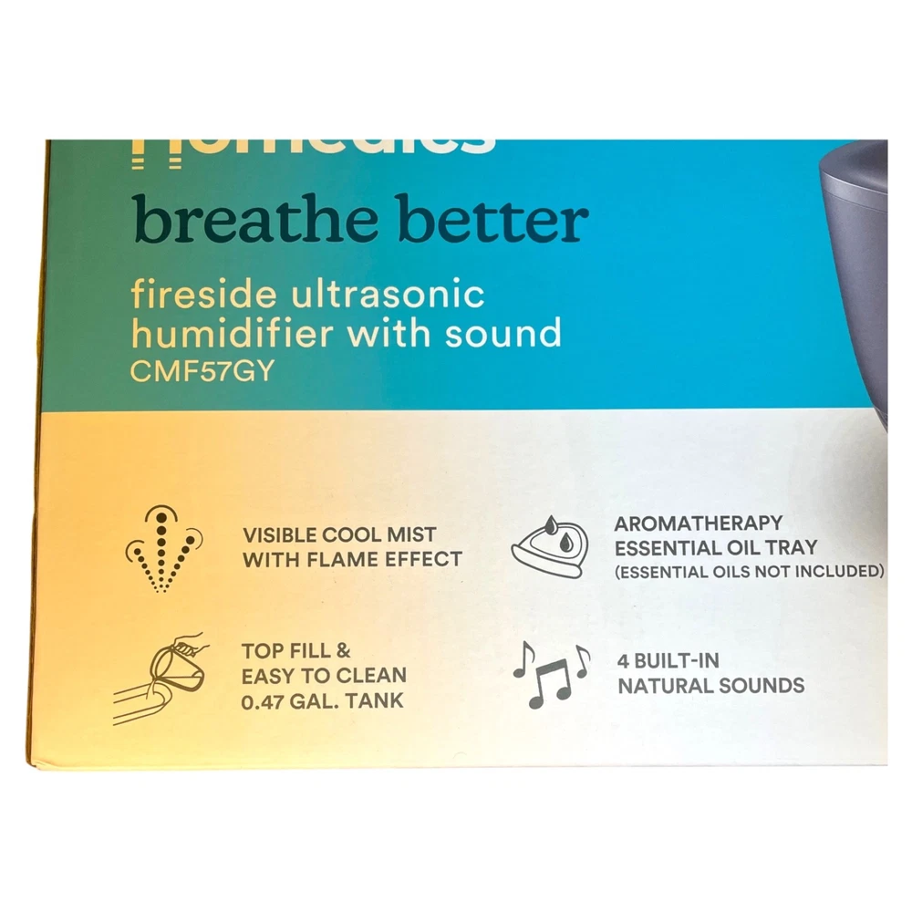 Homedics Fireside Ultrasonic Humidifier with Sound – Breathe Better – NEW Relax, refresh, and breathe easier with the Homedics Fireside Ultrasonic Humidifier , designed to create a soothing home environment. Its flame-effect lighting and natural sound options make it both functional and calming. 💧 Condition: Brand new in box – unopened and unused. 🔥 Flame Effect: Visible cool mist with gentle simulated firelight. 🌫️ Mist Control: Elongated nozzle with 3 mist settings for customized comfort. 🌿 Aromatherapy: Includes essential oil tray for optional fragrance use. 💡 Lighting: 3 brightness settings with on/off control. 🔊 4 Built-In Sounds: Thunderstorm, rain, campfire & morning sunrise. 🧺 Easy Fill & Clean: 0.47-gallon top-fill tank with Clean Tank technology. Bring warmth, moisture, and tranquility to any room with this stylish Homedics humidifier!