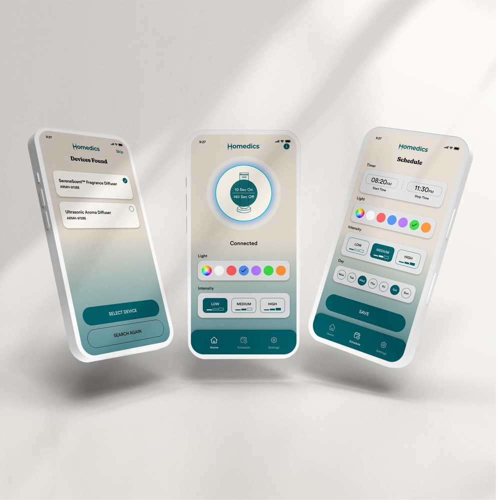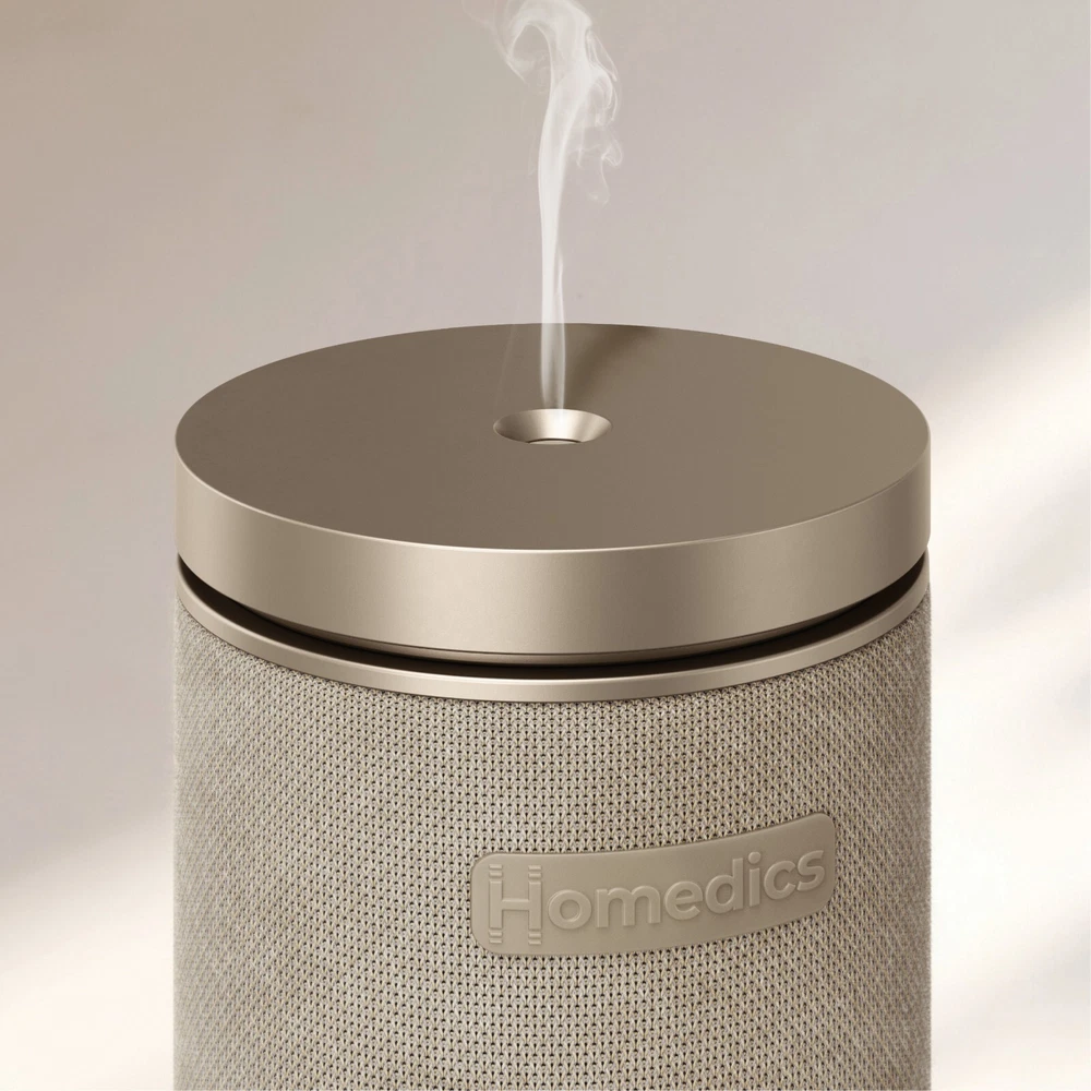 Homedics SereneScent ARMH‑972BE Fabric Diffuser Beige – New Open Box LED App USE WITH HOMEDICS SERENESCENT 120ML FRAGRANCE OILS NO WATER, NO HEAT, NO MESS: Enjoy the mess-free, waterless diffuser that gives you a scent for any larger space (bedrooms, living rooms, dining rooms, etc.). A revolutionary alternative to the traditional diffuser or candle, this is a safer way to bring set-and-forget fragrance to your home. AMAZING SMELLING HOME THE HEALTHY WAY: Most premium home fragrances, whether candles, plug-ins, or sprays, use synthetic chemicals in their formulation. SereneScent home fragrance oils (sold separately) are created with all natural ingredients for a premium mood-boosting layer to home decor. MAKE THE FRAGRANCE EXPERIENCE YOURS: Choose from 3 levels for a fragrance mist intensity that's exactly the way you want it. The waterless diffuser works using intermittent mist intervals with pauses to achieve the precise aroma level you desire. The unit does not mist continuously. The base control and app include scent intensity, timer, and lights for easy-to-use experience. LIGHTS FADE, FRAGRANCE CONTINUES: This SereneScent diffuser is designed to effortlessly blend in with your decor. Turn the lights on and enjoy the warm glow of ambient solid or breathing lights in white, red, blue, purple, green, or orange. CRAFTED WITH NATURAL INGREDIENTS: Use with Homedics SereneScent 120ml clean & natural home fragrance oils (sold separately) - certified up to 100% USDA biobased. Each scent carries a different sensory experience. Choose your favorite 120ml SereneScent bottle to easily refill the diffuser. PATENTED SCENT TECHNOLOGY: The premium fabric diffuser mists with lighter-than-air microdroplets to efficiently disperse ultra-fine luxurious fragrance throughout your space. Patented whisper-quiet air diffusion technology requires no water. WHAT'S IN THE BOX: (1) Homedics SereneScent Fabric Home Fragrance Diffuser, (1) Adapter with Power Cable