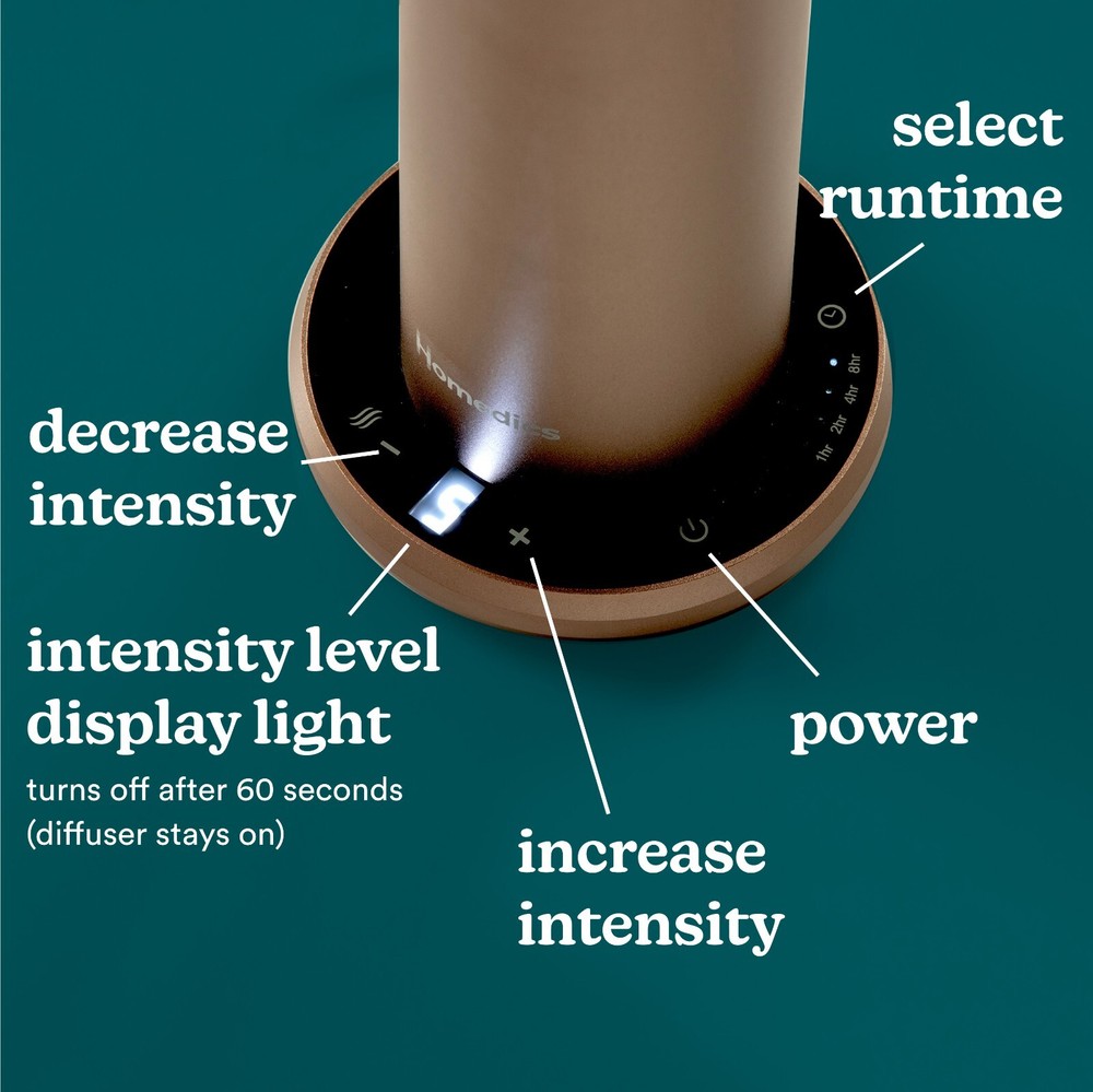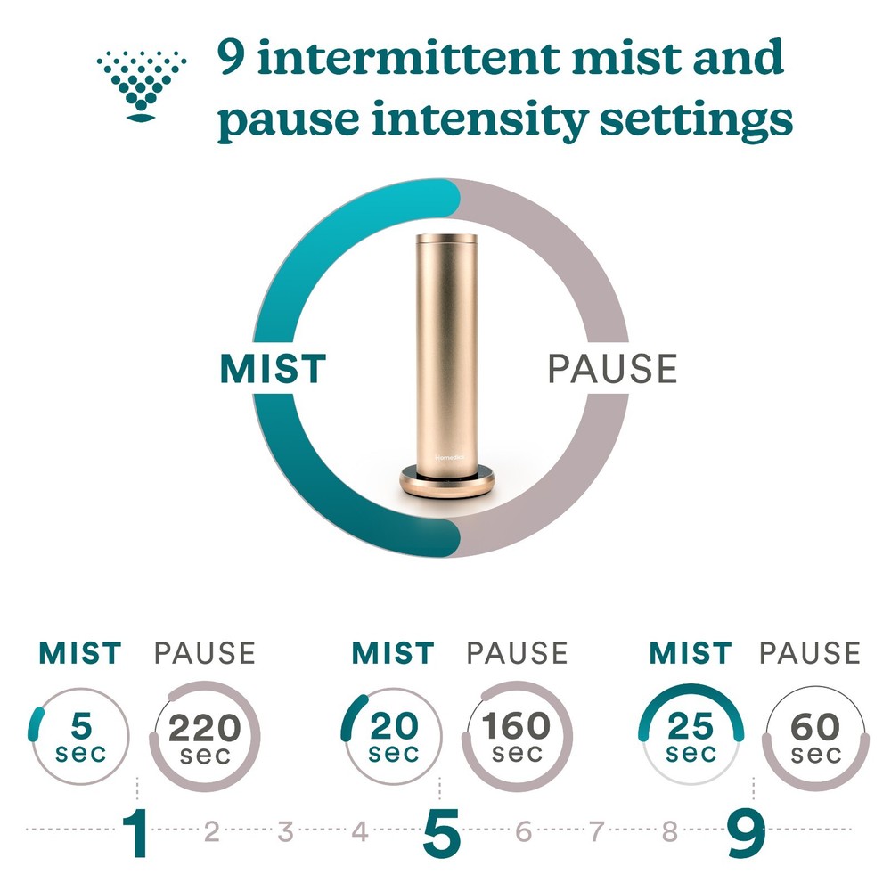 Homedics SereneScent Waterless Home Fragrance Diffuser Homedics SereneScent Waterless Fragrance Diffuser ARMH‑970CA Champagne + Remote USE WITH HOMEDICS SERENESCENT 120ML FRAGRANCE OILS WATERLESS TECHNOLOGY: Enjoy the mess-free, waterless diffuser that gives you a soothing aromatherapy scent for any space. A revolutionary alternative to the traditional diffuser, it comes at only 3lbs and uses filtered air rather than water to bring a more natural airflow. AMAZING SMELLING HOME THE HEALTHY WAY: Most premium home fragrances, whether essential oils or candles, use synthetic chemicals in their formulation. SereneScent home fragrance oils (sold separately on our website) are created with all natural ingredients for premium therapeutic benefits. MAKE THE FRAGRANCE EXPERIENCE YOURS: Choose a fragrance level from 1 to 9 for a fragrance intensity that's exactly the way you want it. The waterless diffuser works using intermittent mist intervals with pauses to achieve the precise aroma level you desire. The unit does not mist continuously. AUTO-OFF DISPLAY LIGHTS: All LED display lights on the diffuser will automatically turn off when left untouched for 60 seconds. But don't worry, your diffuser continues to operate. This feature ensures that the light will not be distracting or disruptive when used in a bedroom while sleeping. CERTIFIED 100% NATURAL, INDULGENT SCENTS: Use with Homedics SereneScent clean & natural home fragrance oils (sold separately on our website) - USDA certified & 100% biobased. Our fragrance oil collection comes in five different scents: Tokyo Tea, Parisian Affair, Amalfi Bliss, Moroccan Magic, and Maldives Escape. Each scent carries a different sensory experience. Choose your favorite essential oil bottle and add it to our waterless diffusers. PATENTED AIR DIFFUSION TECHNOLOGY: The sleek, premium aluminum, diffuser mists with lighter-than-air microdroplets to efficiently disperse ultra-fine luxurious fragrance throughout your space. No water needed. WHAT'S IN THE BOX: (1) Homedics SereneScent Waterless Home Fragrance Diffuser, (1) Remote Control, (1) Adapter