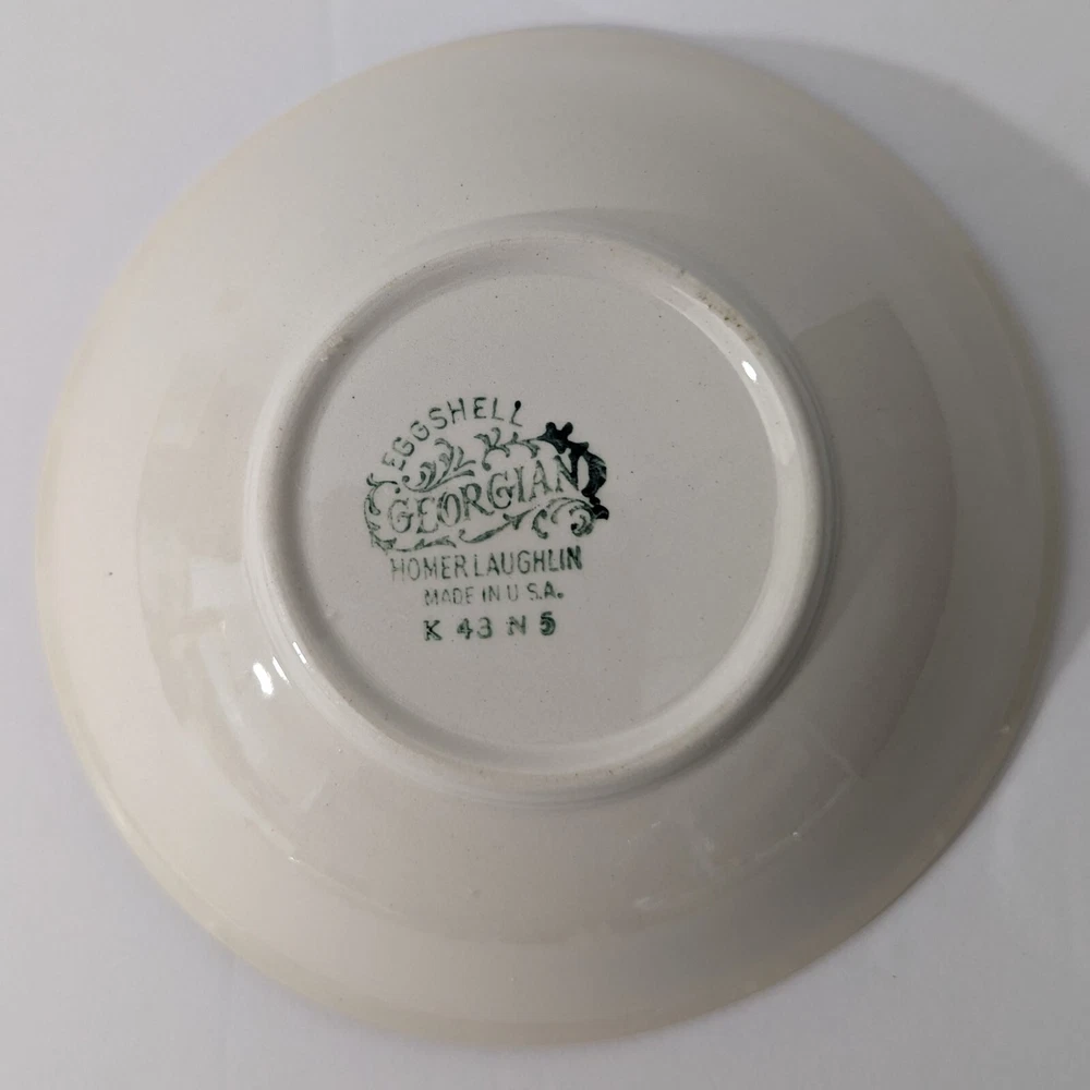 Homer Laughlin Ferndale Fruit Sauce Dessert Bowl 1943 Eggshell SET OF 4 - Lot 2 Good condition - may contain some crazing - no chips or cracks - see photos The last bowl has a scratch inside-see the last photo Bowls will ship USPS Priority Mail. I have several other pieces from this set. See my ebay store and view the category DISHES>HOMER LAUGHLIN