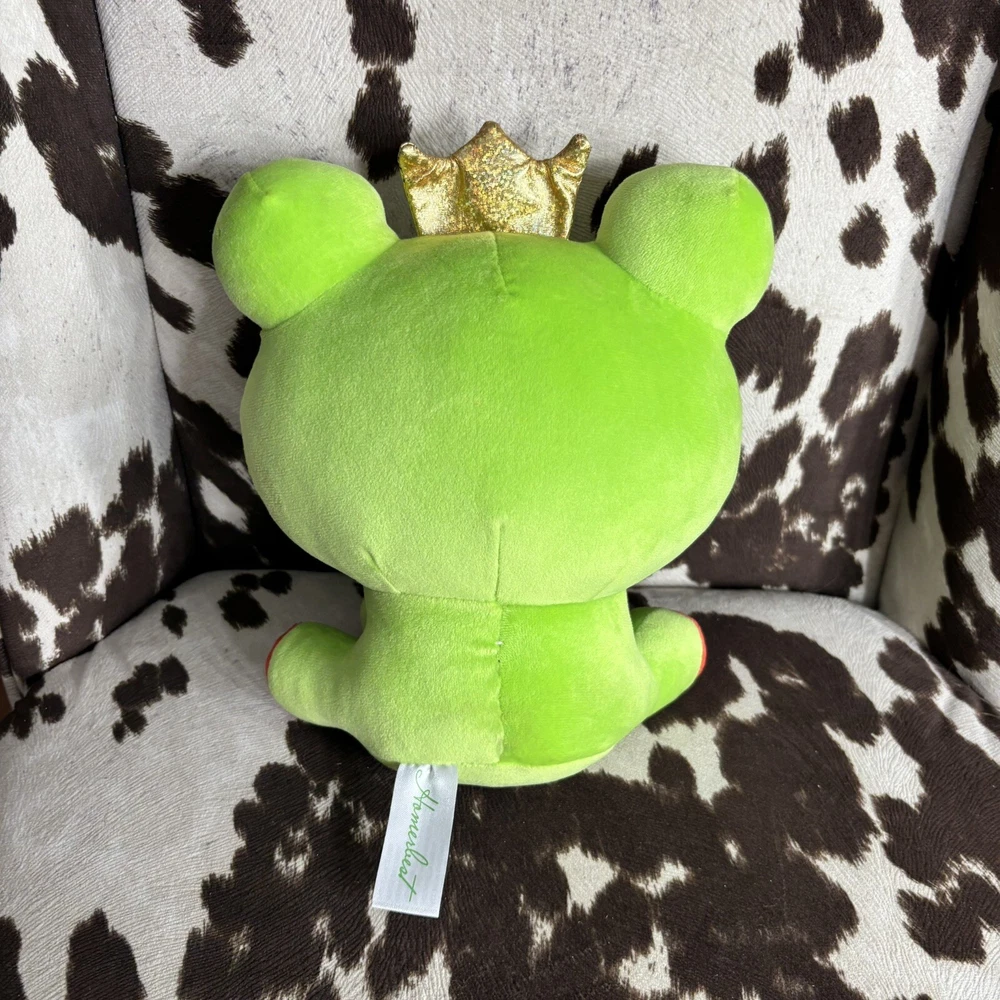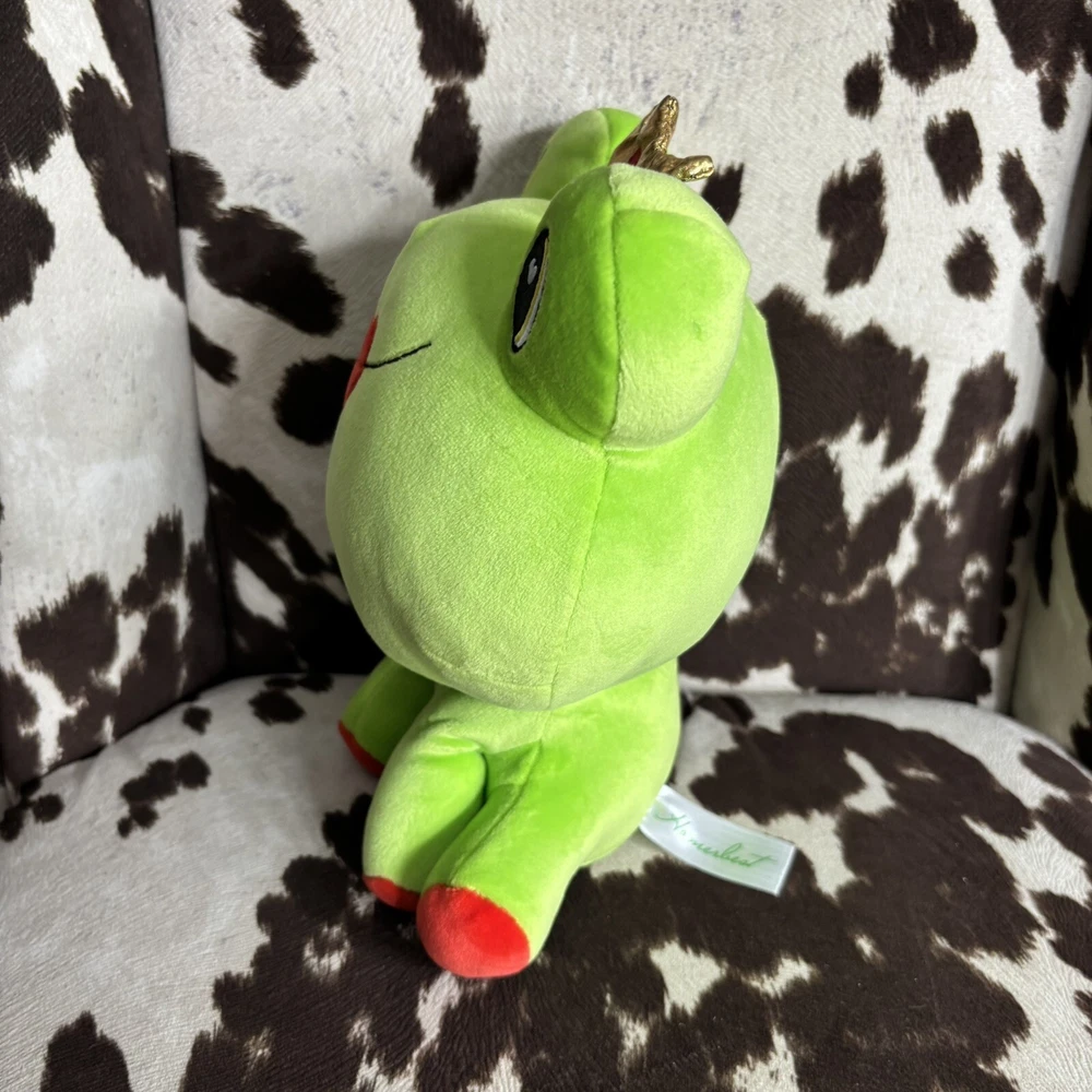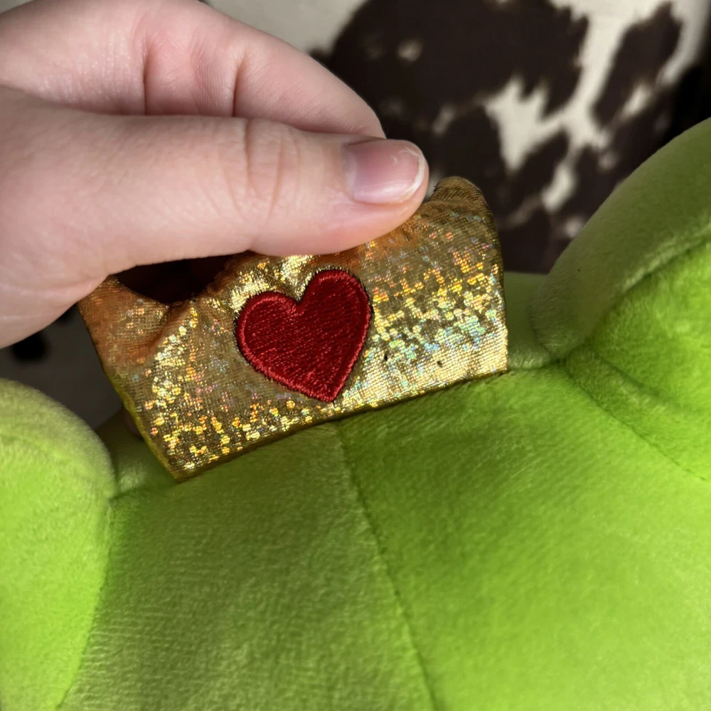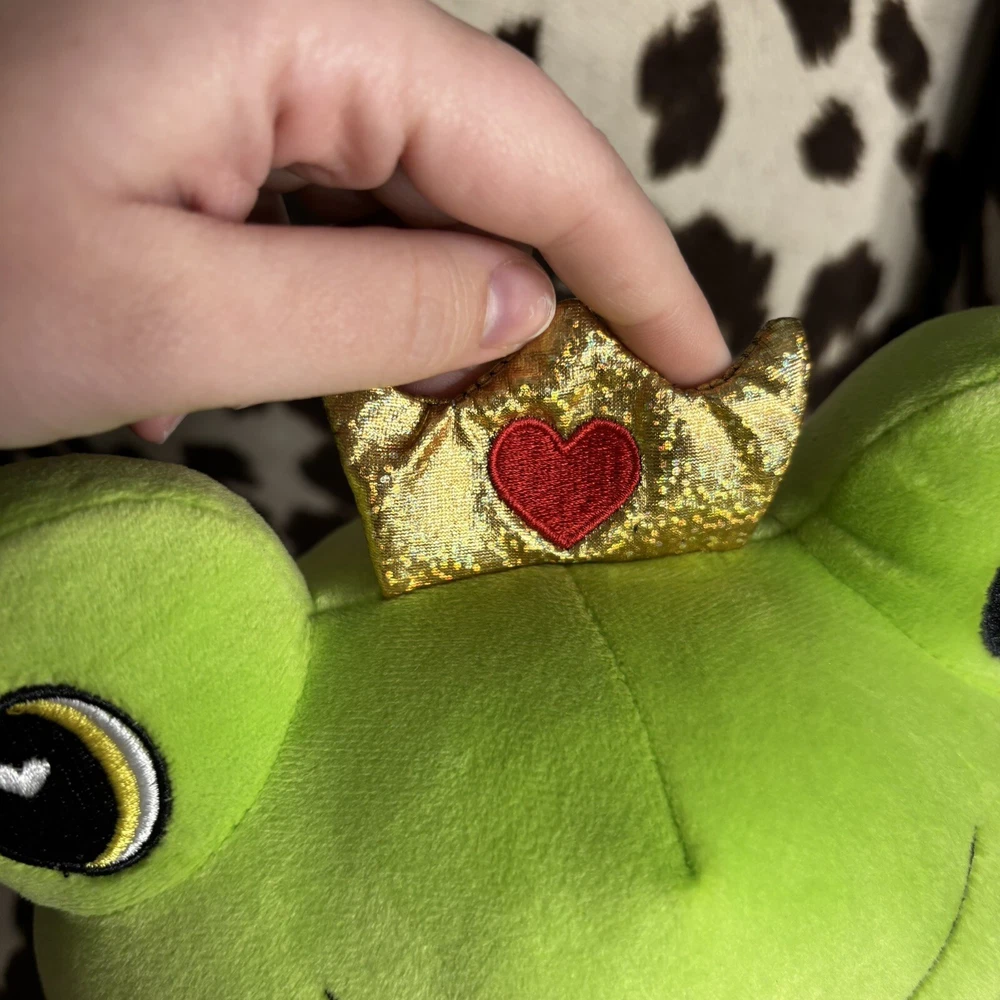 Homerbest Heart Lipped Princess Frog Valentines Day 11” Mochi Plush In good overall condition. No stains. Butt tags intact. Measures about 11”-11.5” tall. Has heart shaped lips and heart shaped pupils with a rainbow holographic gold crown. Has the material and stuffing of a mochi plush (close to a Squishmallow, but softer). Only flaw is two small punctures in crown. Only noticeable in certain lighting. Price reflects this.