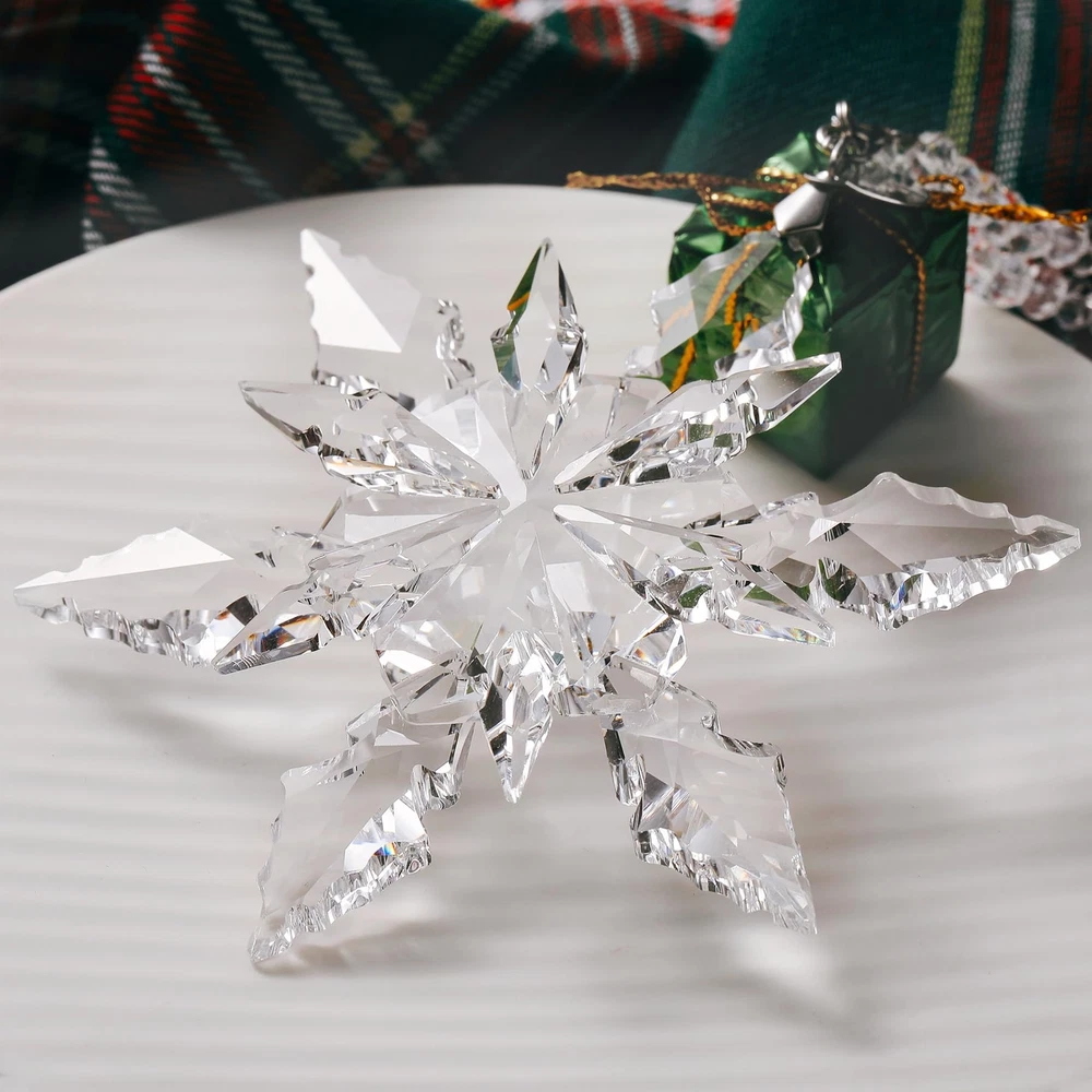 Amazing shiny Christmas snowflake decorations in multiple colors! Perfect Christmas decorations, don't hesitate! The snowflakes are made of crystal and are transparent and natural. Sparkling in different angles and lights. Decorate your Christmas tree. Please note. Because they are hand cut and made items, please expect slight variations. There may be some slight variations in the design and shape of the box. If you receive a damaged package, please contact us immediately and we will give you satisfactory results. Complete Package: Includes 1 x 4.3-inch diameter snowflake ornament, 2 x ribbons, 1 x crystal chain, and 1 x blue gift box High-Quality Crystal: Crafted from sparkling, high-quality crystal that is bright and transparent, each snowflake is carefully designed to refract light beautifully Delicate Snowflake Design: Adds a festive Christmas atmosphere; hanging it on your Christmas tree or window creates a beautiful winter landscape Transparent and Natural: Crystal snowflakes are transparent and natural, perfect for Christmas; Use them to decorate your tree or hang them in the window to catch the light 2024 Annual Ornament: A special gift for Christmas and New Year, adding sparkle to your collection and someone's holiday