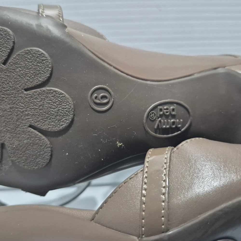 Visit The Rag Traders Closet for hundreds of other quality men's & women's garments! ......IMPORTANT INFORMATION FOR BUYERS...... Garment sizes can vary between brands, eras, and due to wear and washing over time. Teen garments may also have similar sizing to small adult pieces and are not always easily distinguishable. To ensure the best fit, buyers are encouraged to check all provided measurements, review photos, and read the full description before purchasing, as it is the purchaser's responsibility to do so. Description: The Homyped Yvonne heels offer both comfort and style with a classic closed-toe design and a secure ankle strap with buckle closure. Featuring a 5cm heel, these shoes provide subtle elevation while maintaining stability. The brown upper and sole are possibly synthetic. A versatile addition to any wardrobe, suitable for both casual and formal occasions. Key Features: Brand: Homyped Style Name: Yvonne (#101774) Size: 6 Material: Possibly synthetic upper and sole Color: Brown Design: Closed toe, ankle strap with buckle closure Heel Height: 5 cm Measurements (approx.): Sole length (toe to back of heel): 25 cm Condition: Excellent, near-new condition with minimal signs of wear. Please refer to photos as they form part of the description Sent with Australia Post standard parcels Visit our store to view hundreds of other items combined postage available