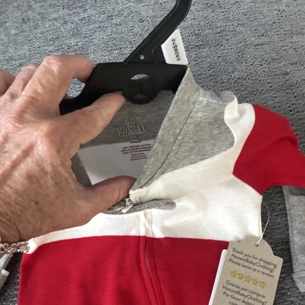 The Honest Organic Newborn Unisex Baby Gift One Piece Zip Front Pajamas #IT1051-56 is a cozy and stylish option for your little one. Made from 100% cotton knit fabric, these striped pajamas feature a zip closure for easy dressing and long sleeves for extra warmth. The sleeves fold over baby’s fingers to keep the baby from scratching their face. Perfect for all seasons, these pajamas are comfortable and versatile, making them a great choice for any new baby's wardrobe. Ideal for both boys and girls, this unisex design ensures a perfect fit for your newborn baby. Take a look at my other listings as I am willing to do bundles and bundle shipping saving you money ! Please be sure to follow my eBay. Take a look at my other listings and check back often as I list new items weekly . All of these things will assist my algorithms and bring more people to my eBay account. All proceeds, go directly to assisting my son’s wife and two young children as he has just undergone two life-saving surgeries and is on an organ donor waiting list for a third surgery . Thanks for your support !