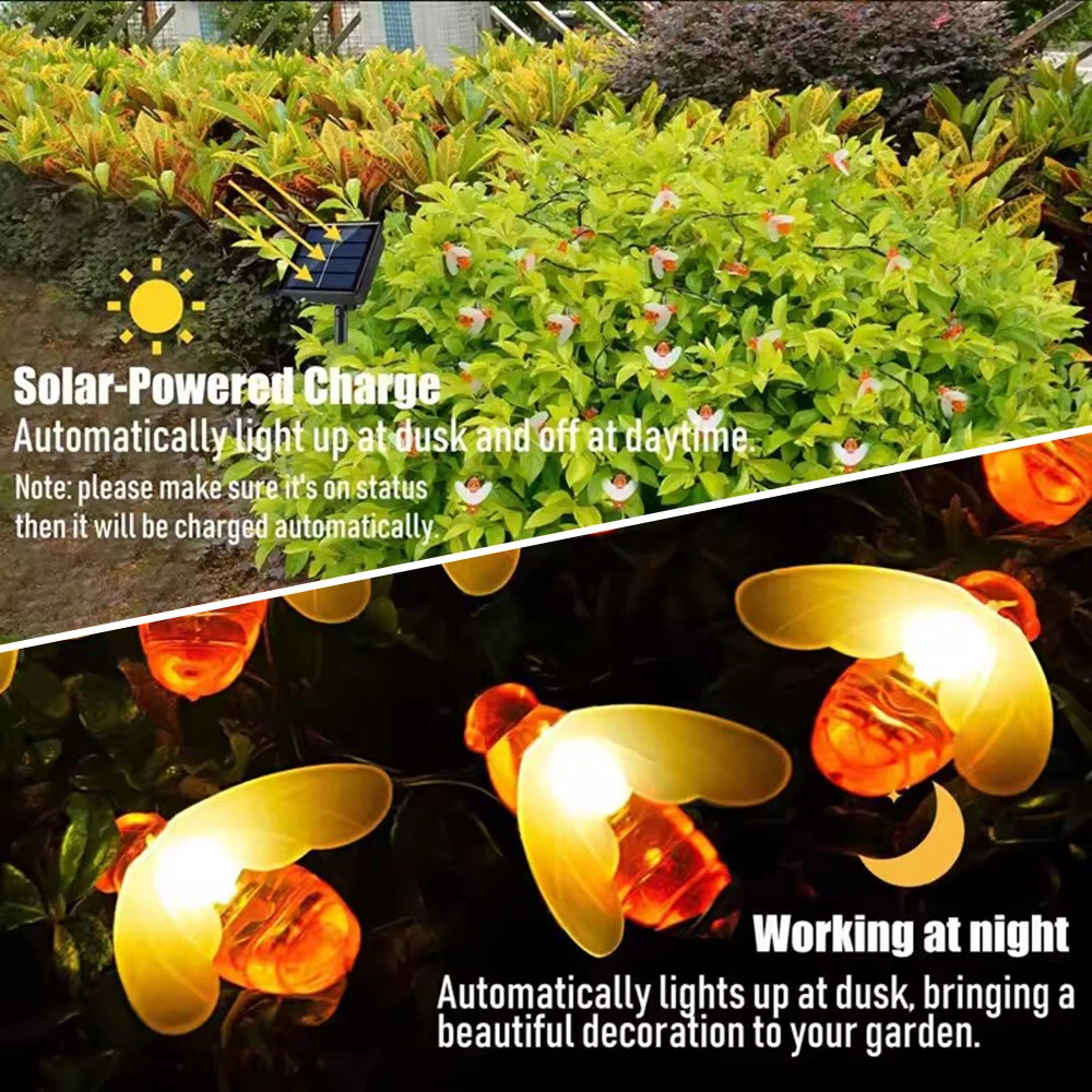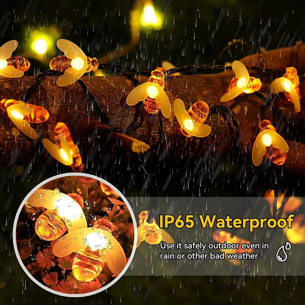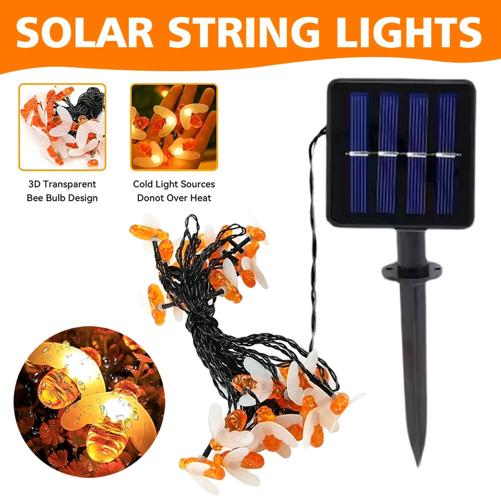Features: 1. Solar string lights with 30 LEDs, where the LEDs are shaped by highly simulated bee decorations to look like some real bees in your garden. 2. Solar string lights are powered by solar energy and powered by rechargeable batteries, no need for wires and electricity, which can reduce a lot of costs for your home. 3. When you turn on the ON/OFF button, it will automatically light up when the environment is dark and turn off when the sun rises.MODE button can switch the light to 2 different modes. 4. The light string and solar panel are IP65 waterproof. Don't worry about using them in rainy or snowy days. 5. These solar bee string lights glow at night, perfect for decorating your garden, patio, lawn, porch, gate, yard. Specifications: Product Size: 12cm*5cm*3cm Net Weight: 170g Product Appearance: Bee appearance Usage: Outdoor lighting Outdoor lighting Material: plastic Product lamp beads: 30 lamp beads Voltage range: 3v Color temperature: 3000K Package List: Lamp * 1 + ground plug * 1 Notes: 1. Please allow a little error due to manual measurement. Please make sure you don't mind before bidding. 2. Please understand that the color may vary due to the difference of monitors. On Dec 25, 2024 at 01:16:00 PST, seller added the following information: