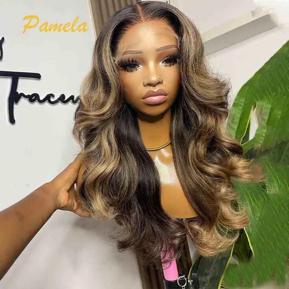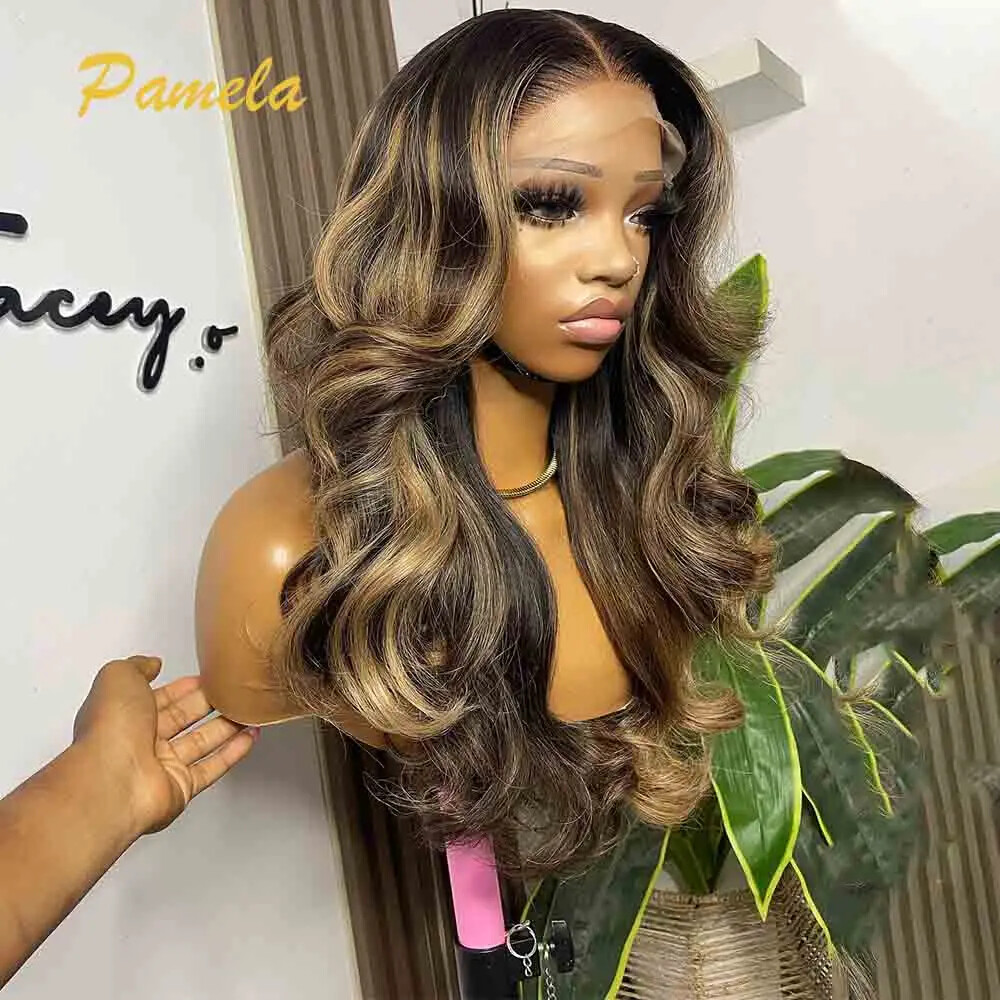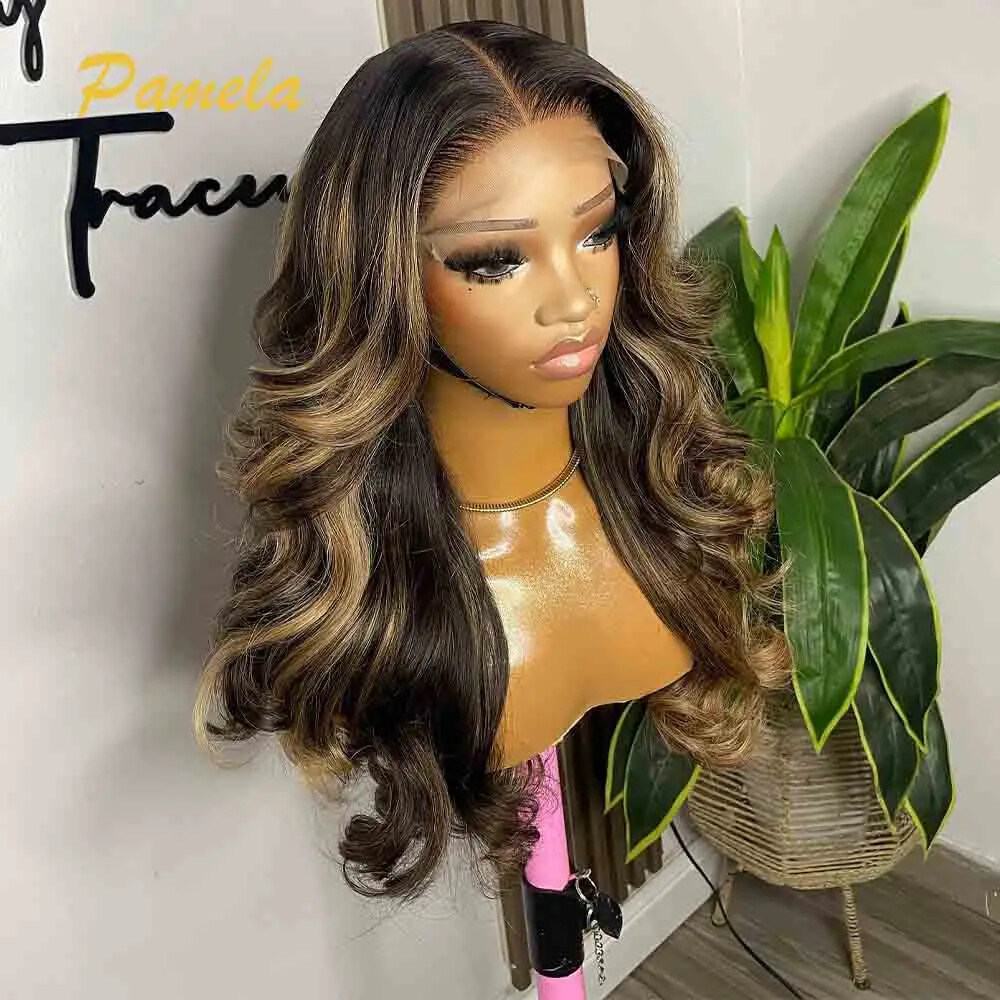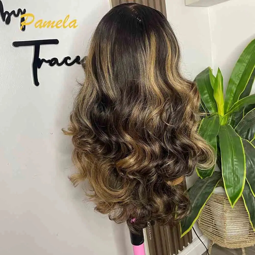 Blonde Curly Transparent Lace Front Wig Human Hair Glueless Remy Highlight