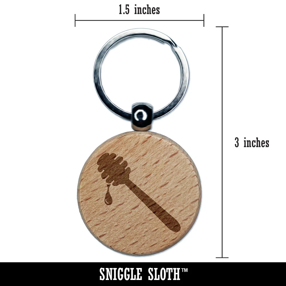 Honey Dipper Engraved Wood Round Keychain Tag Charm