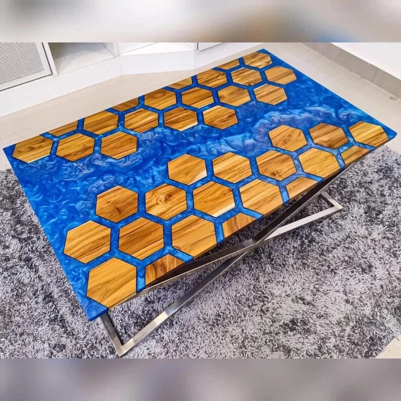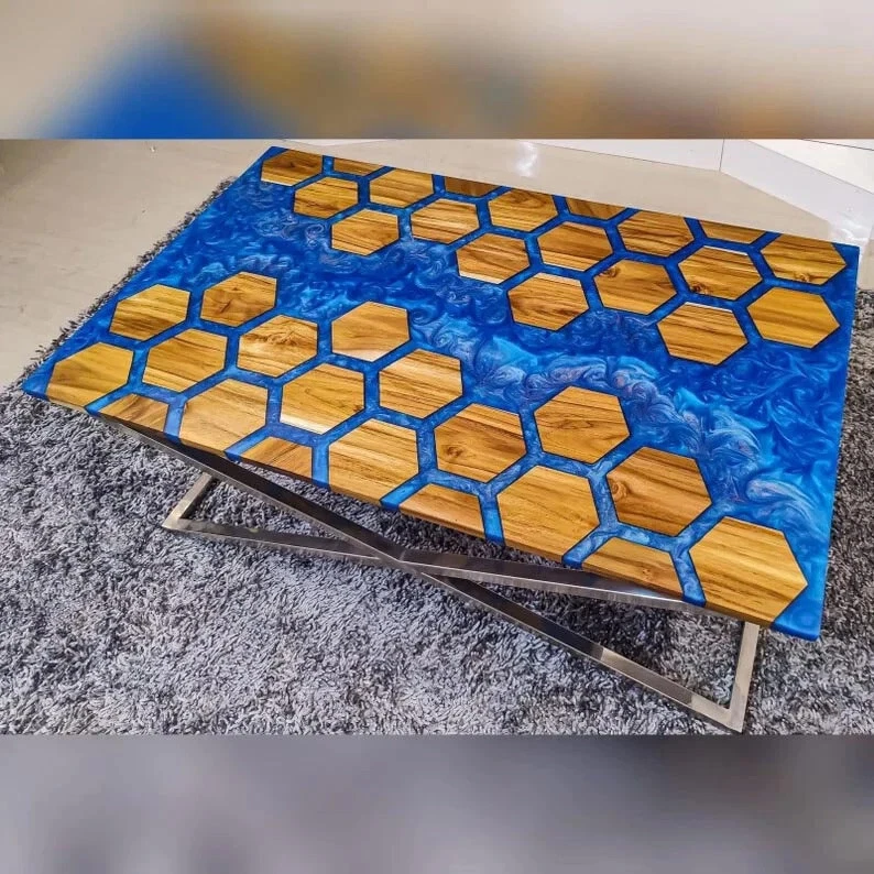 Honeycomb Design Blue Epoxy Resin River Table , Handmade Furniture Decors