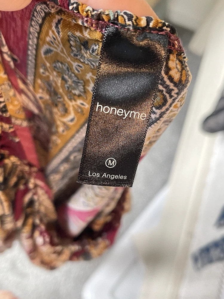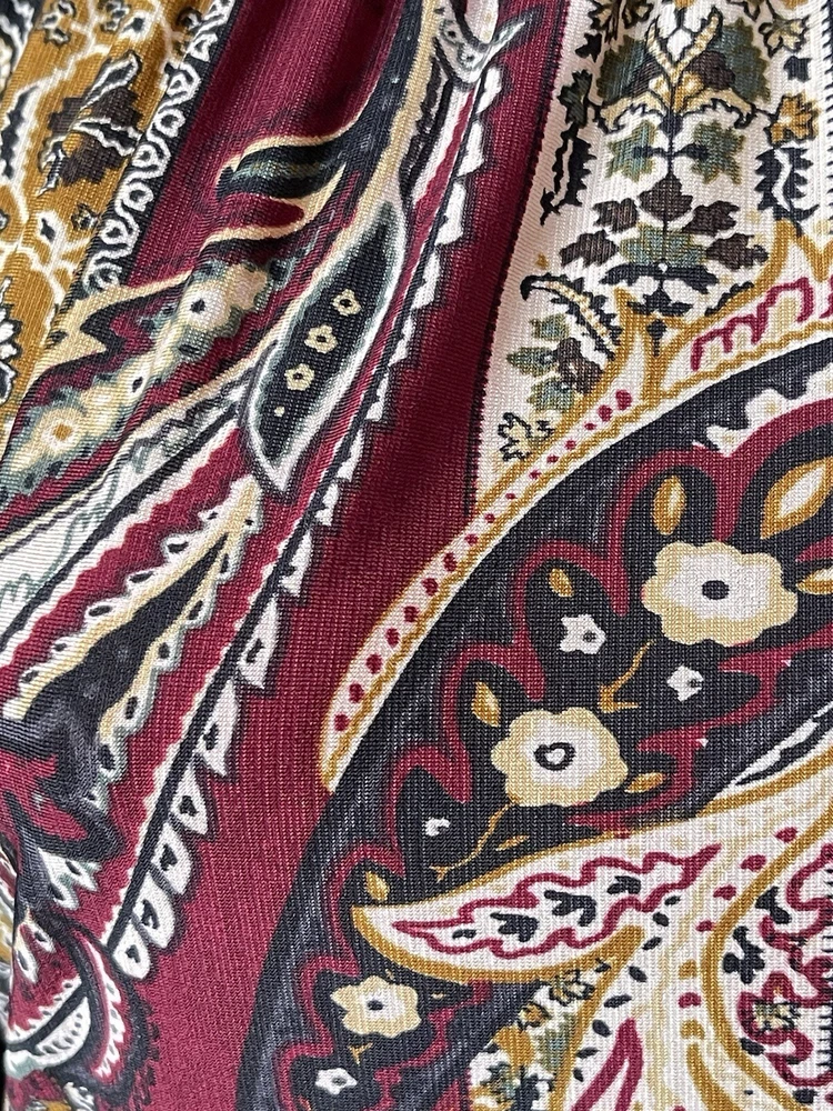 Honeyme Dress Size M 3/4 Flare Bell Sleeve Paisley Fall Colors Stretch Batteau