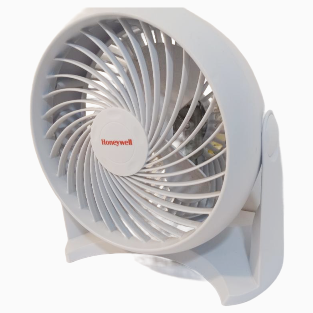 Honeywell Fan Turbo Force Table Air Circulator Stand Good Condition The Honeywell Fan Turbo Force Table Air Circulator is a white, round, electric-powered fan made of plastic. It features a 7.2-inch assembled blade diameter and 3 speeds, making it suitable for indoor use in any room. With a weight of 2.6 pounds, this fan includes features like wall-mountability, adjustable tilt head, and quiet operation. Operated with an analog/mechanical control style, this fan offers a matte finish and is designed for easy use on a table or desk. *** Item Descriptions *** Brand - Honeywell Condition - *** Pre-Owned *** Good Condition *** Has Some Dust On Fan Blades Color - White For - Indoor Use, Table Or Desk