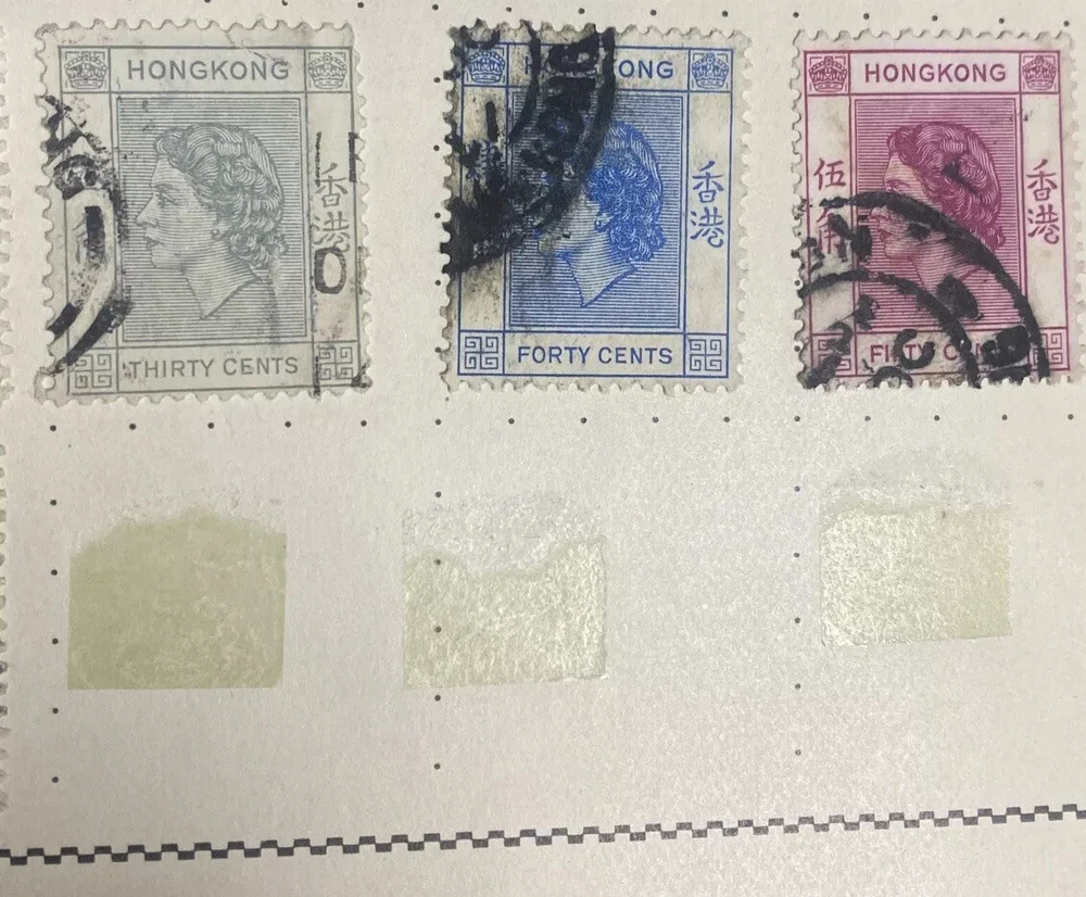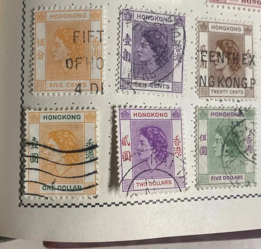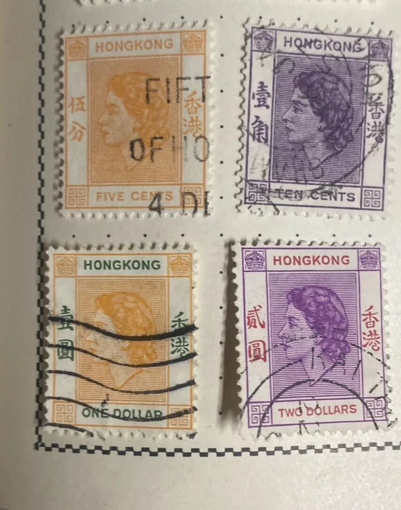 Hong Kong 1954 GB QEII Definitive set Used (9)stamps Out Of Pristine Album 👀LOOK. Don’t miss out on this rare lot of good old stamps from Hong Kong. Check out my other over 300 listings of steals and deals like this! Many more treasures and gems to be had!!! Check out my over 300 listings and save my store for the CRAZIEST DEALS ON EBAY