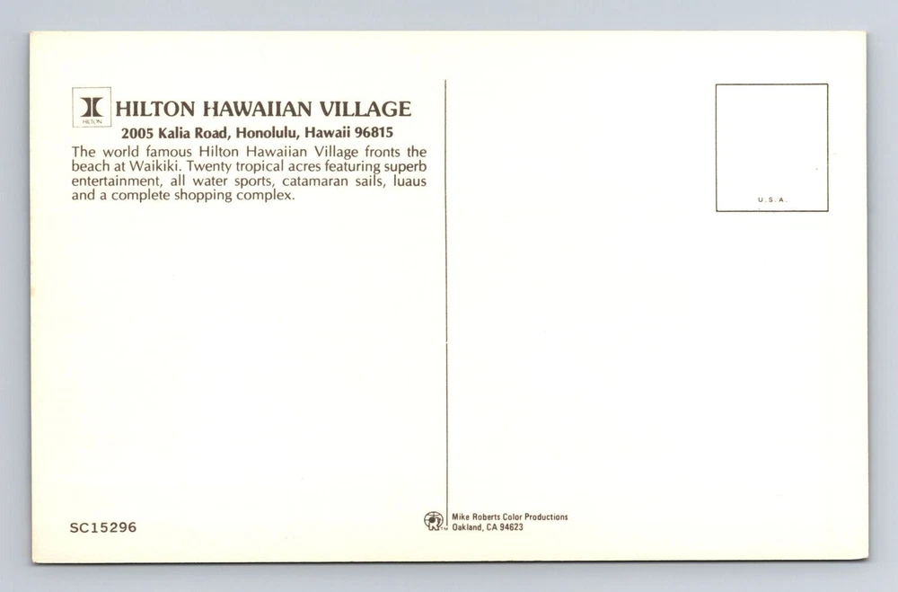 Honolulu HI-Hawaii, Hilton Hawaiian Village, Waikiki Beach, Vintage Postcard