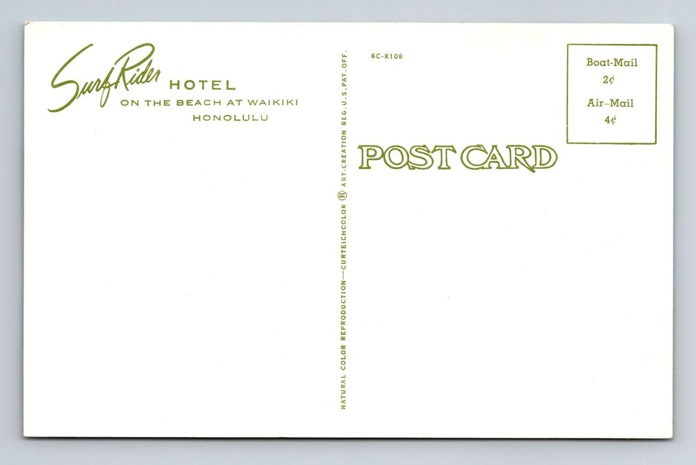 Honolulu Surf Rider Hotel Waikiki Beach Vintage Postcard Hawaii