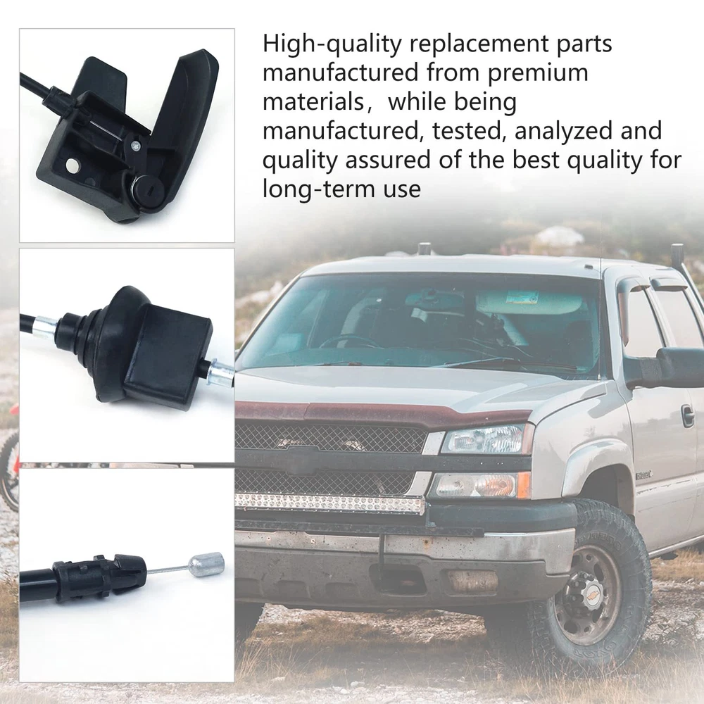 【Excellent Quailty】Our Hood Release Cable features premium quality and is perfect for your vehicle and lifestyle. It is manufactured to meet or exceed stringent industry standards. 【OEM DESIGN】This Hood Latch Lock Bonnet Release Cable is made from good-quality components to exactly replicate the OEM unitis , and is designed for durability and reliable performance.The cable is easy to install. 【Reference number】15142953, 15706152, 15769724, 15780437, 912-017 100% rigorously tested before shipping. check the part number to confirm the compatibility before purchase. Total length: 92.1'' 【Warranty】1 YEAR WARRANTY, If cracked or worn, please contact us for a return. 【Customer Support】 Please Check the Fitment before Buying. If you have any questions about the item, please feel free to contact us. We will reply to you within 12 hours.