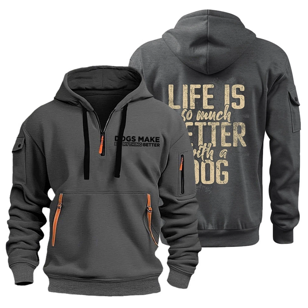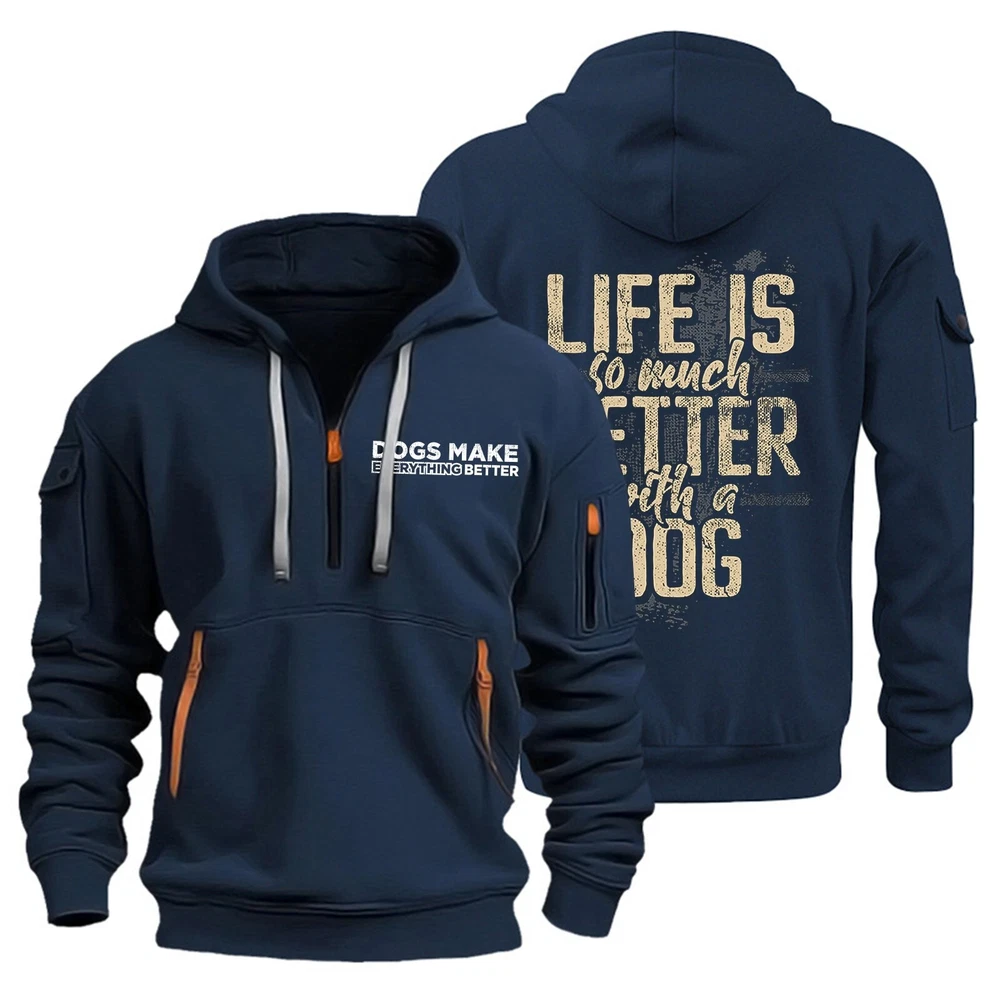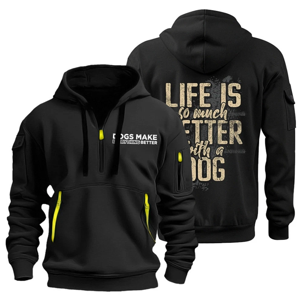 Hoodies for Men Zip Up Hoodie 1/4 Zip Pullover Tactical Sweatshirt with Pockets