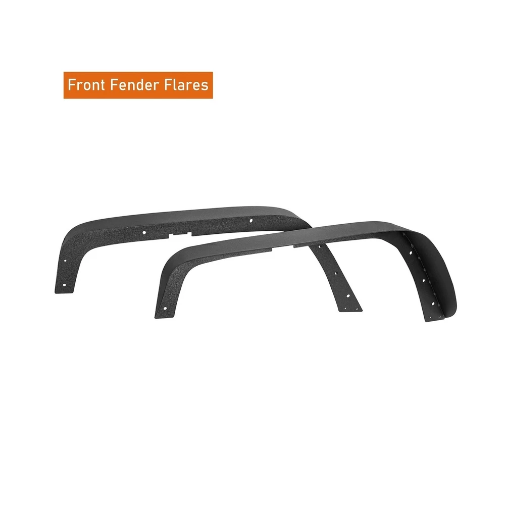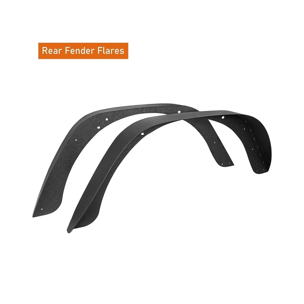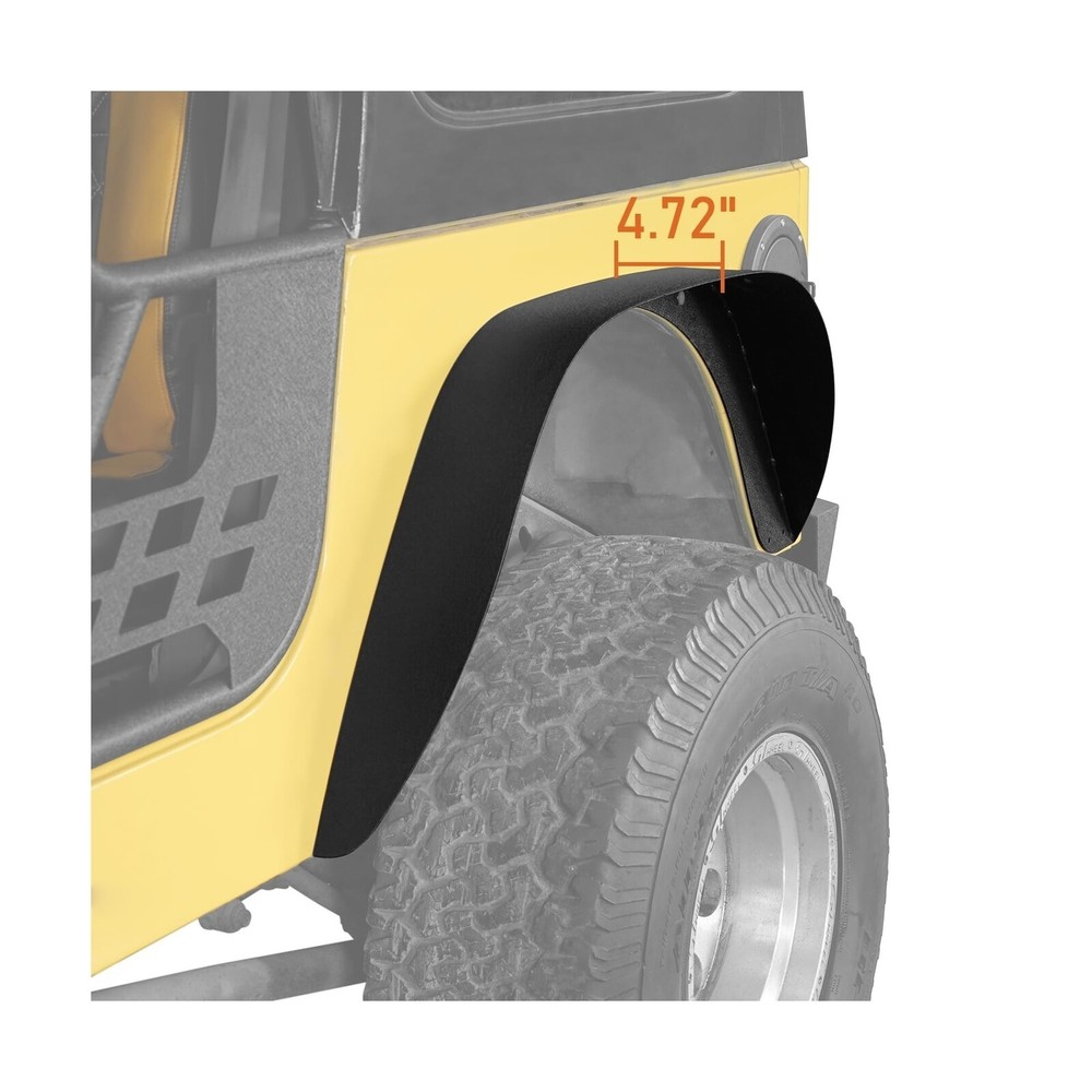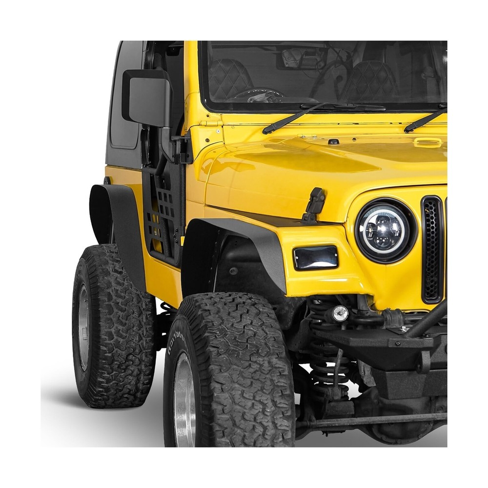 Hooke Road Wrangler TJ Flat Fender Flares, Front & Rear Steel Wheel Flares Liner for 1997-2006 Jeep Wrangler TJ - 4PCS Set Description Features: Hooke Road solid steel flat fender flares for Jeep Wrangler TJ & Unlimited LJ 1997 1998 1999 2000 2001 2002 2003 2004 2005 2006 The slim design provides extra tire coverage for larger tires while maintaining an offroad look, don't need to worry about the wheels rubbing the fender flares Protect wheel wells from mud, scratches, sand and other outer damage; Covers up existing scratches and add a rugged off-road exterior look These fender flares are built from heavy-duty 16-gauge(1/16 inch) and 14-gauge(5/64 inch) steel construction to ensure maximum durability against heavy loads. It's coated with a durable black powder coating to ensure lasting protection against corrosion Drilling is needed for front and rear fenders to ensure solid mount, but it is quite easy Package include 2 front fender flares & 2 rear fender flares, mounting hardware; user manual Manufacturer warranty for 2-Year from date of purchase. Lifetime customer support from Hooke Road Product Details: Brand: Hooke Road Color: Black Exterior Finish: textured Material: Carbon Steel Item dimensions L x W x H: 42.51 x 4.92 x 16.53 inches Brand: Hooke Road Color: Black Exterior Finish: textured Material: Carbon Steel Item dimensions L x W x H: 42.51 x 4.92 x 16.53 inches Style: Modern Auto Part Position: Front Vehicle Service Type: Jeep TJ, 1997-2006 Jeep Wrangler TJ Fit Type: Vehicle Specific Fit Manufacturer: Hooke Road Automotive Fit Type: Vehicle Specific Fit Item Weight: 35.4 pounds Product Dimensions: 42.51 x 4.92 x 16.53 inches Is Discontinued By Manufacturer: No Manufacturer Part Number: LED-BXG-056 Date First Available: February 7, 2018 Delivery We Do Not Ship Outside of the Continental US. Return Policy All items qualify for returns within 30 days of receipt. Buyer is responsible for return shipping on any item that is not damaged. Feedback We take our reputation seriously, we buy and sell online, so we understand the value of trust. If you are unsatisfied with your order, please contact us and we will work with you to resolve it to your satisfaction.
